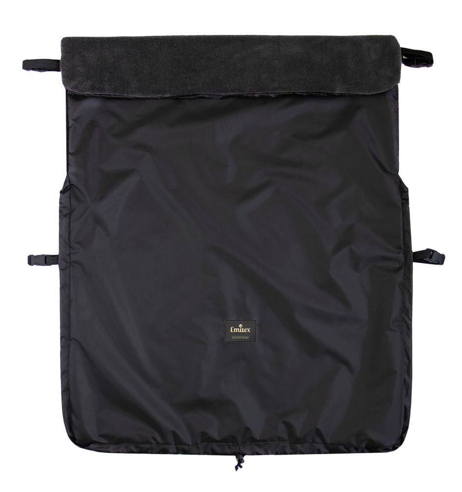 Praktické je uchycení k kočárku pomocí elastické gumy se sponou, což umožňuje uchytit nánožník pevně na různých místech. Zatažením za šňůrku s brzdou se v spodní části nánožníku vytvoří kapsa, ve které zůstanou nožičky dítěte v teple.