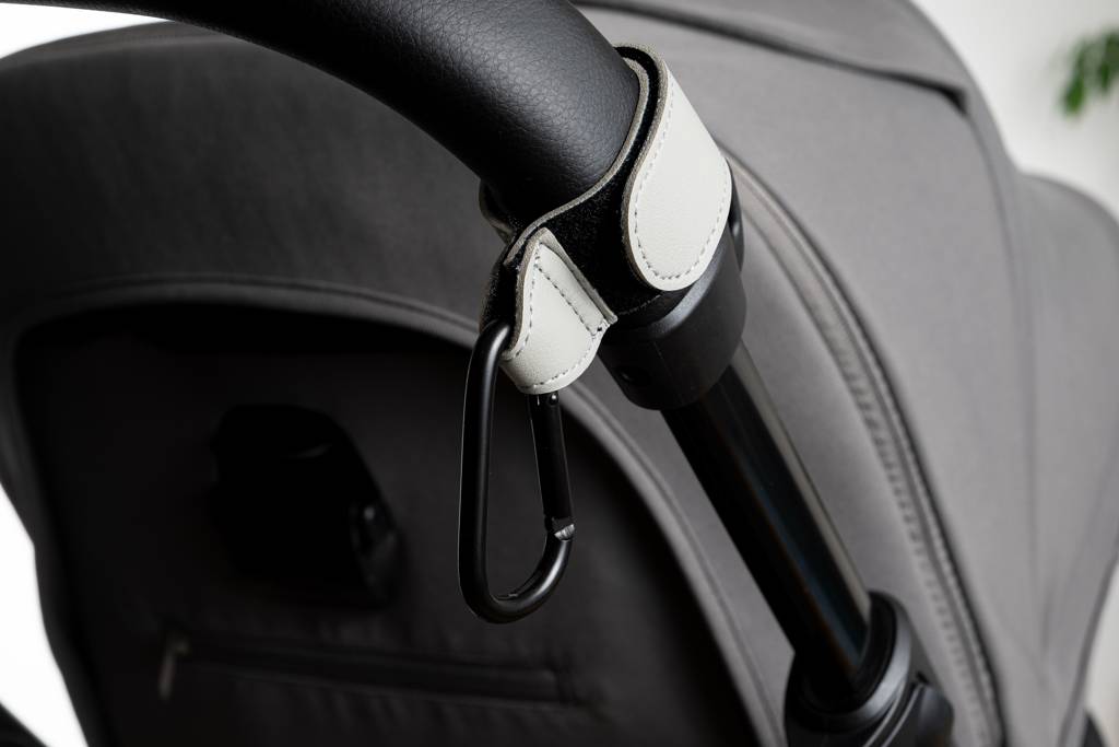 Tento praktický doplněk umožňuje jednoduché a bezpečné připevnění tašek na pleny či jiných tašek ke kočárku. Háčky jsou vyrobeny z vysoce kvalitní umělé kůže, která zajišťuje odolnost a dlouhou životnost.