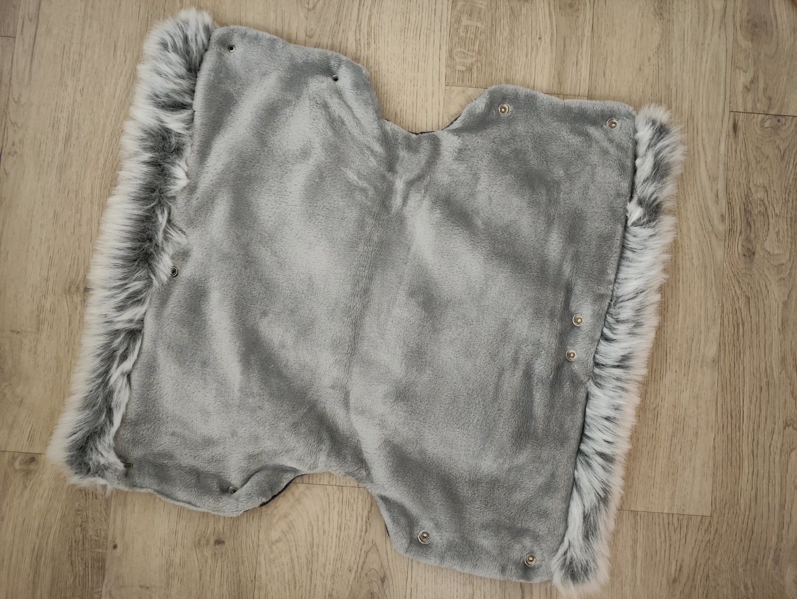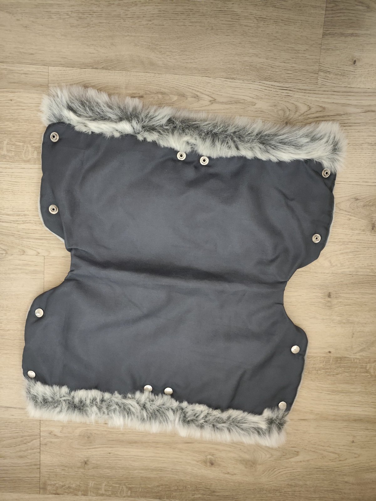 Rukávník na kočárek. Uvnitř teplý kožíšek. Na patenty.