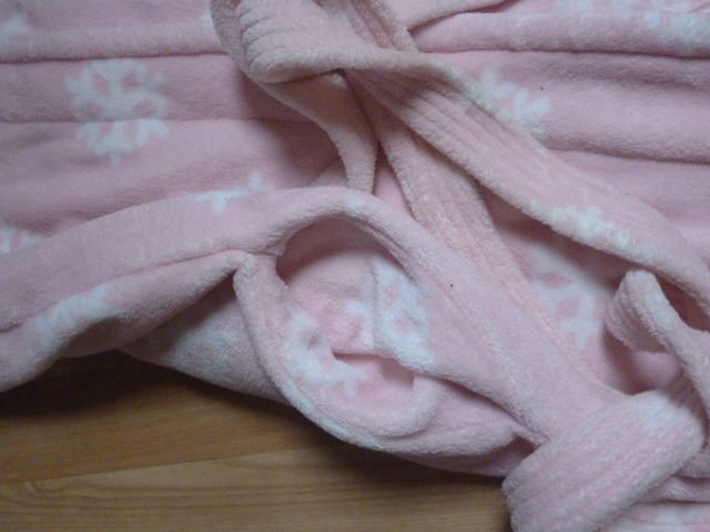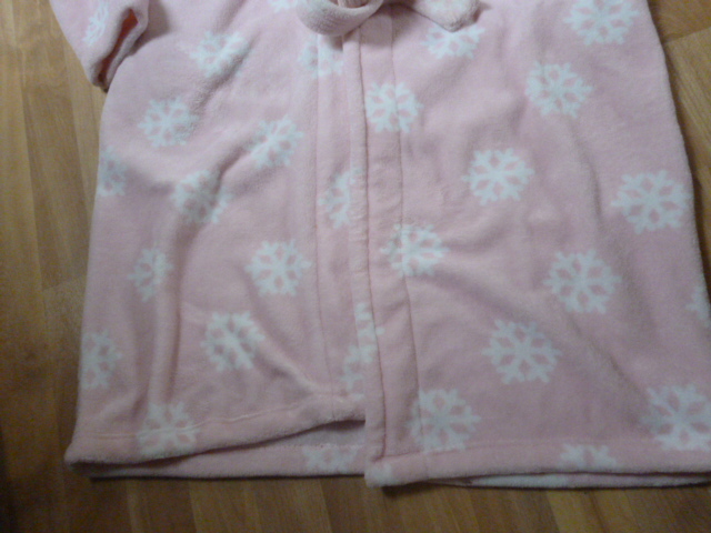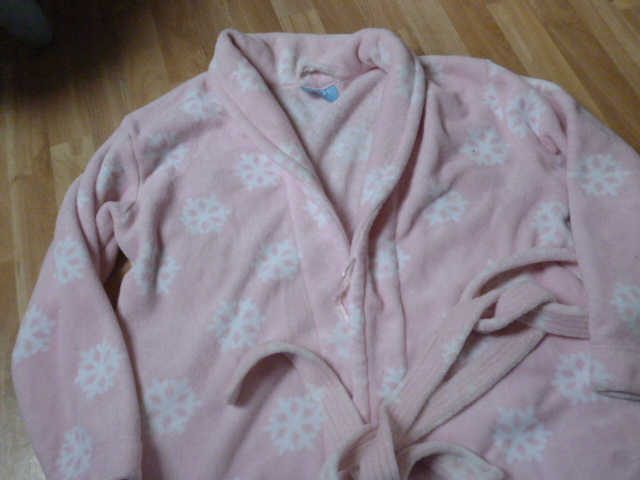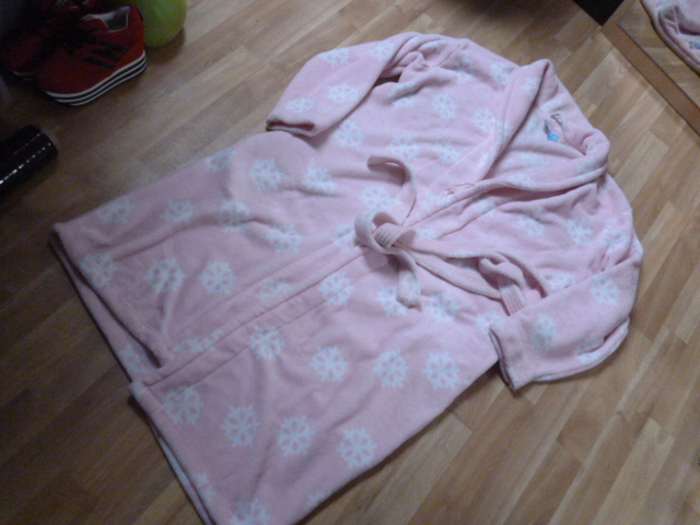velmi příjemný, nošený málo, jen nutno vyprat, délka je 130 cm, rukáv od krku je 83 cm, průramky 2x74 cm, neni to ten slabý župan, tenhle pěkně zahřeje, 100% polyester psaná vel. XL-XXL zn. H§F