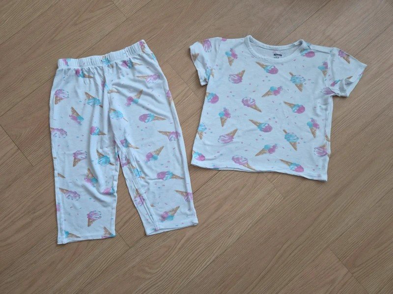 Prodávám kamarádce, letní pyžamo, značka Sinsay, velikost 104, tenký materiál, nohavice kratší délky, nošené ale ještě poslouží