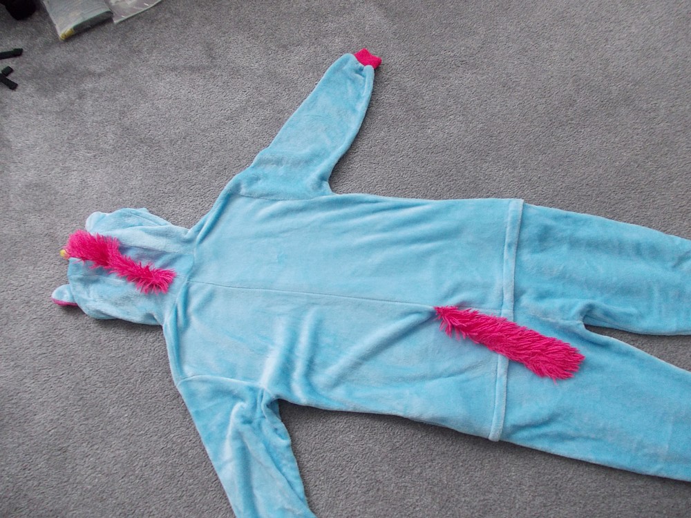 Délka 135 cm, šířka 51 cm, vnitřní strana nohavice 55 cm, rukáv od krku 68 cm.
