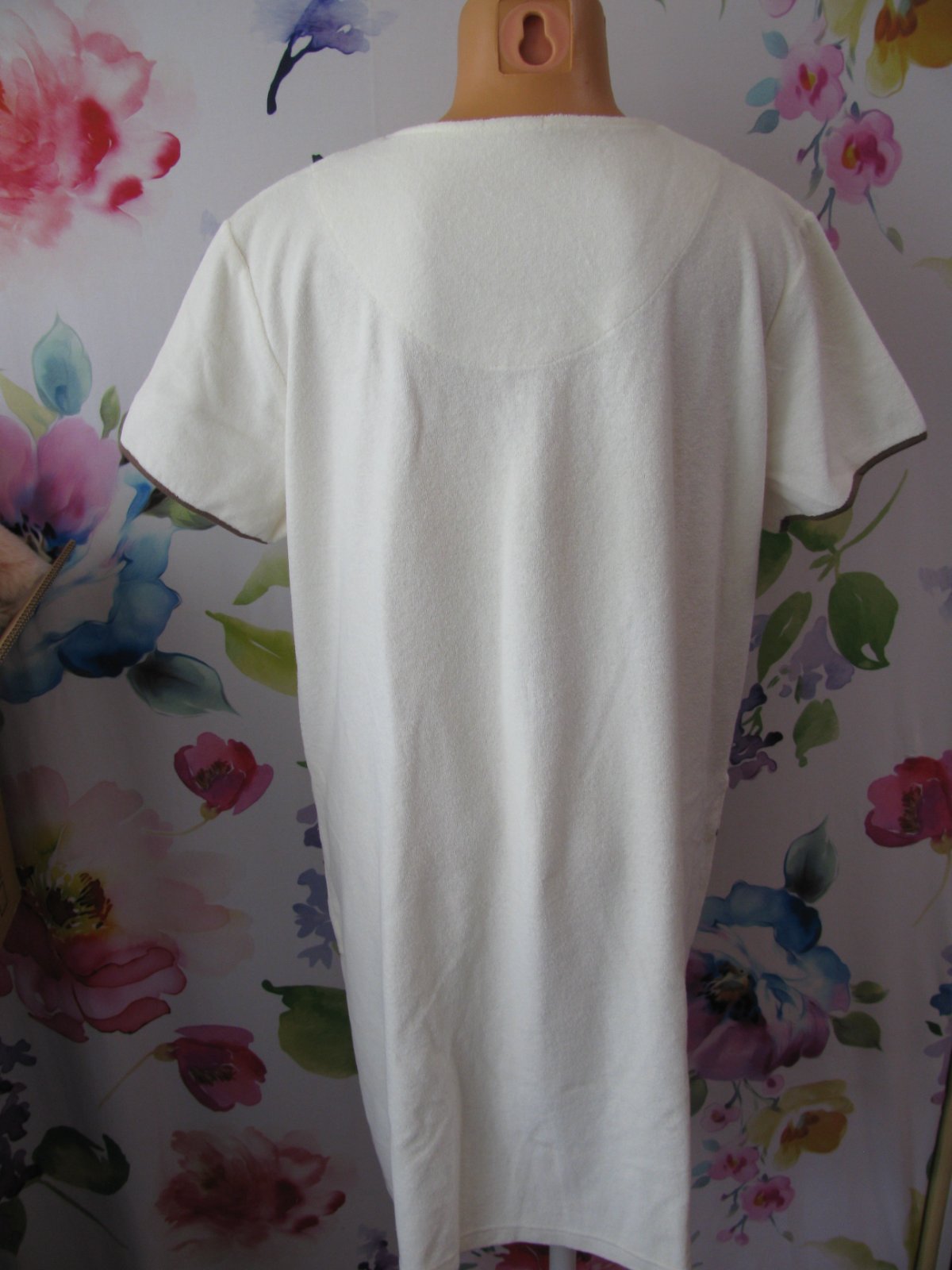 Krásný, pružný, smetanově bílý župan, celo propínací na zip, kapsy, kupovaný v Maďarsku v termálech. Je nám malý, musím prodat. Štítky nebyly, materiál bavlna s podílem elastanu.