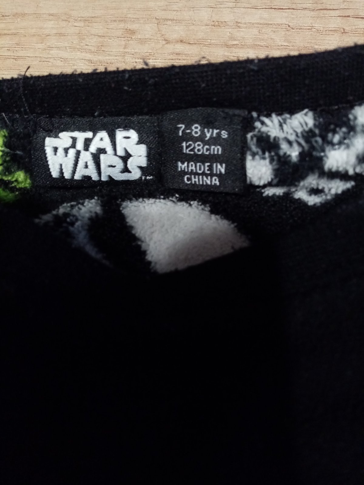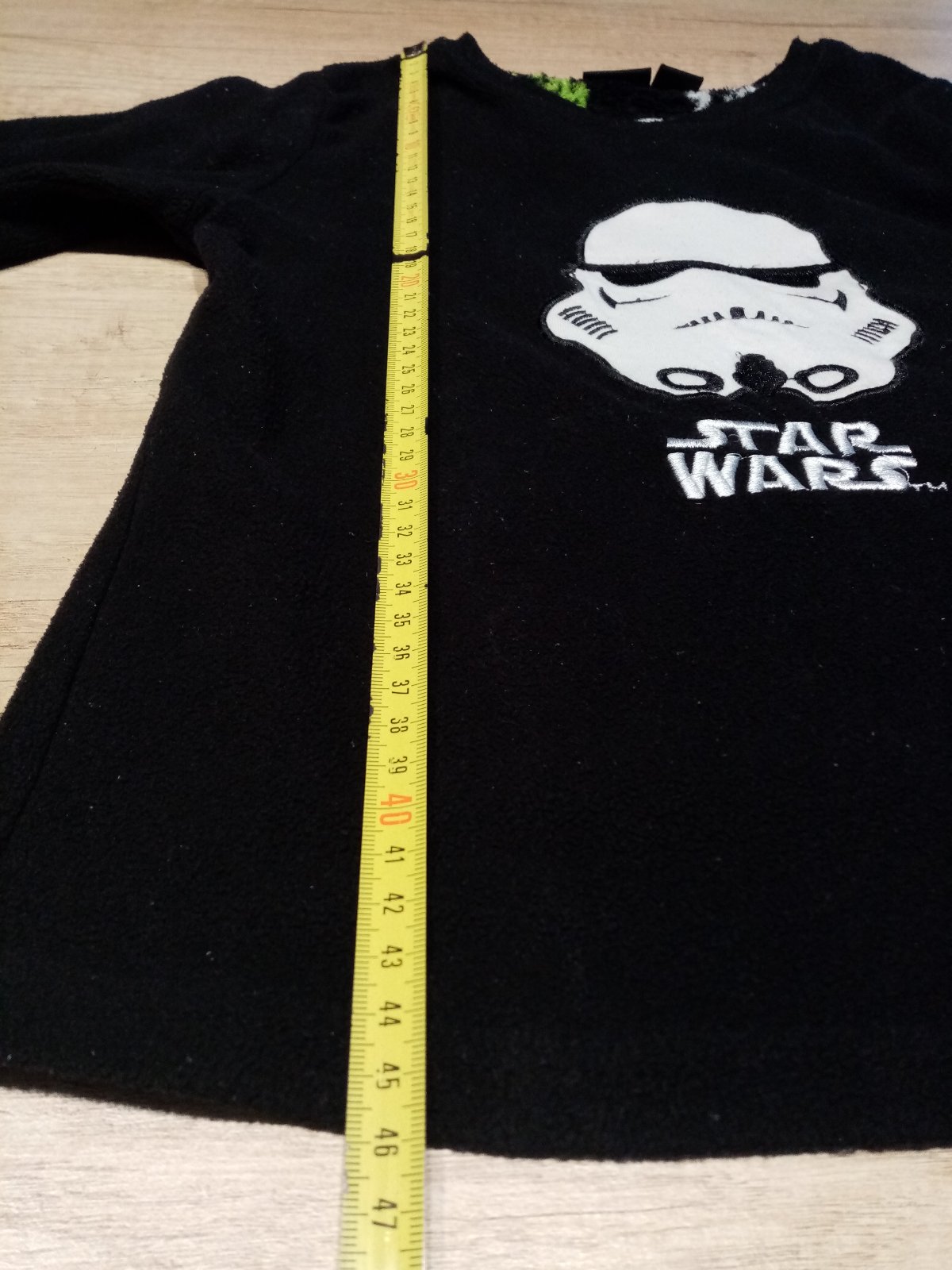 Tmavě modré pyžamo, kalhoty flísové. Uvedená velikost 122/128 sedí. V pase šířka kalhot 26 cm, délka kalhot 70 cm.