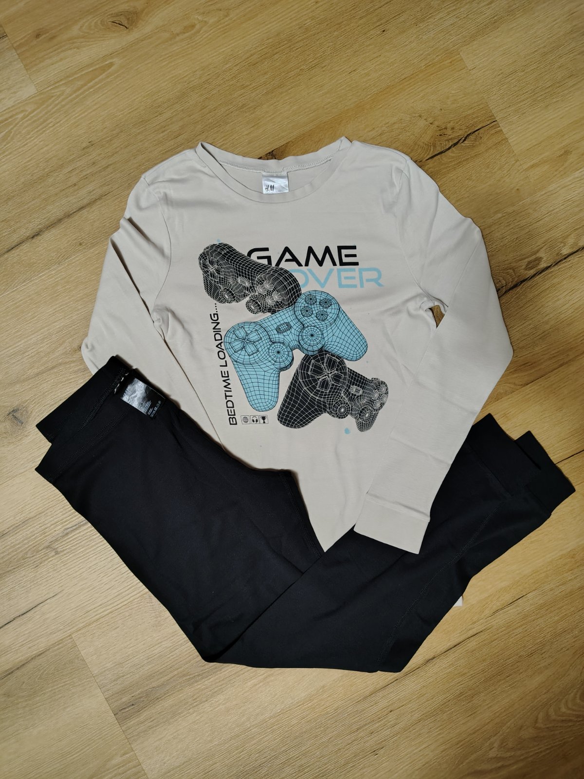 Chlapecké dvojdílné dlouhé pyžamo H&M 170 (14+ let) s potiskem herních ovladačů s nápisem „GAME OVER“ ze 100% bavlny.