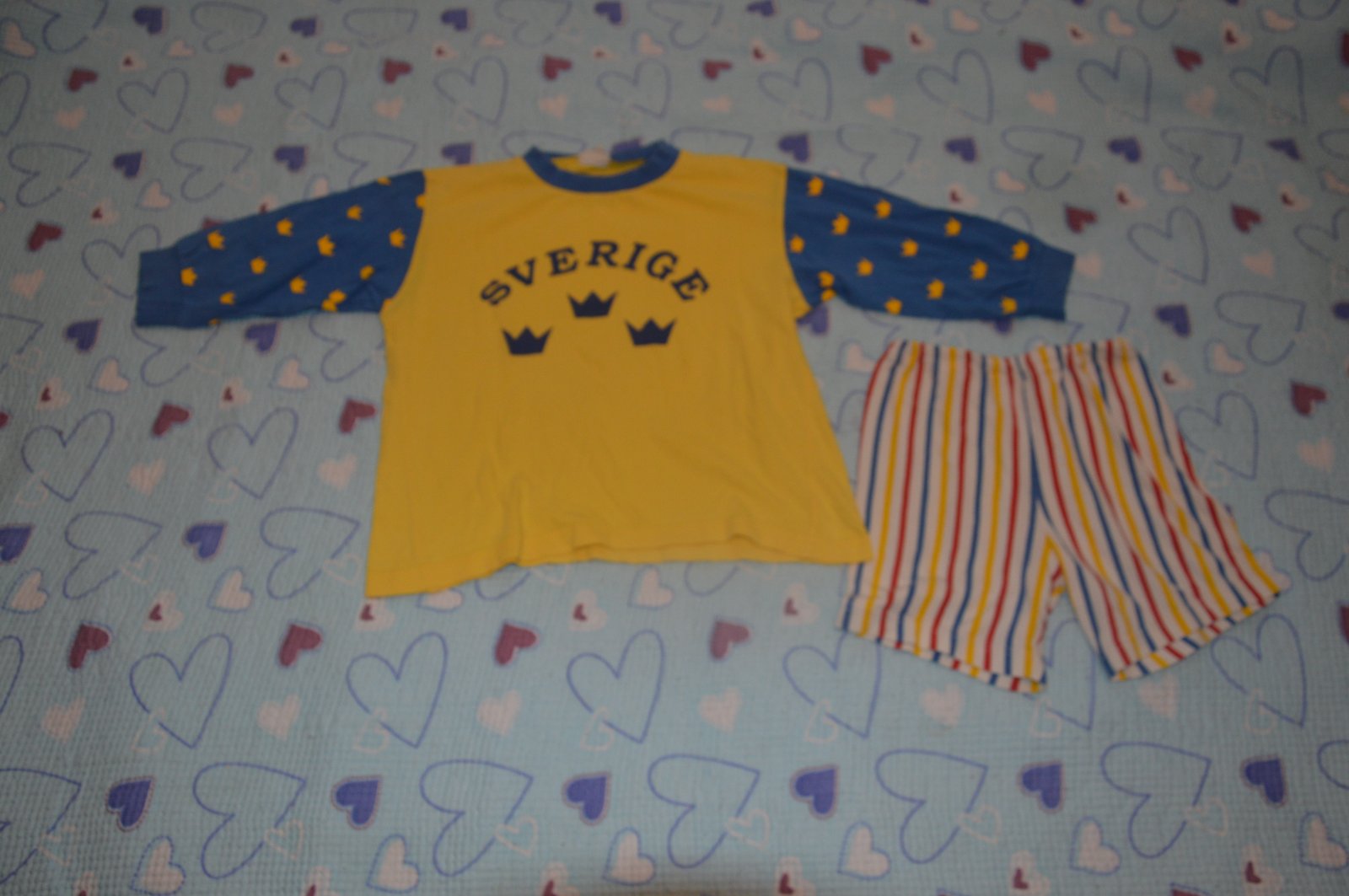 letní bavlněné pyžamko, 100% ba, vel. uvedena 110, lze ale nosit cca od vel. 98. Chloupek od praní, top stav.