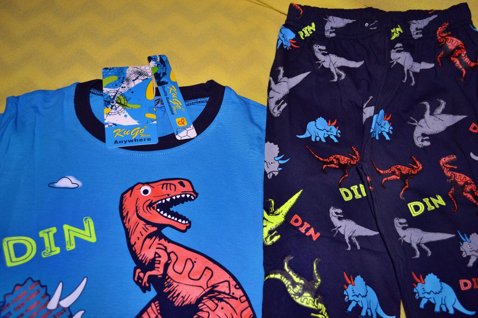 kvalitní bavlněné pyžamo Kugo s ještěry,části po nasvícení ve tmě svítí,výborný materiál,100% bavlna,osvědčený skvělý výrobek