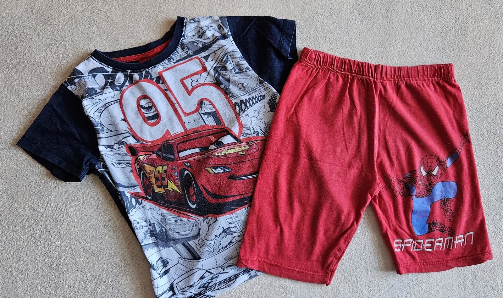 Prodám námi zkompletované pyžamko - vrchní díl Cars, spodní díl Spiderman.