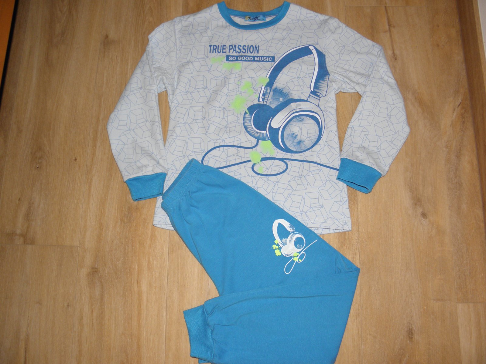 Prodám chlapecké pyžamo zn. Kugo vel.134. Teplejší, uvnitř příjemný chloupek. Nošeno, místy už drobné žmolíky, ale jinak v pořádku, není nijak vytahané apod.