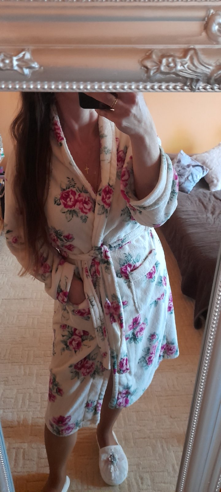 Dámský mikroplyšový hřejivý župan s květinovým vzorem