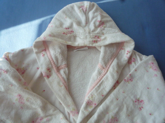 Župan je kupovaný nový, je v pořádku. Barva je světlounce růžová. Délka rukávu od ramene 50cm, délka županu od krku 76cm. Cena + balíkovna 75kč, zásilkovna 89kč.