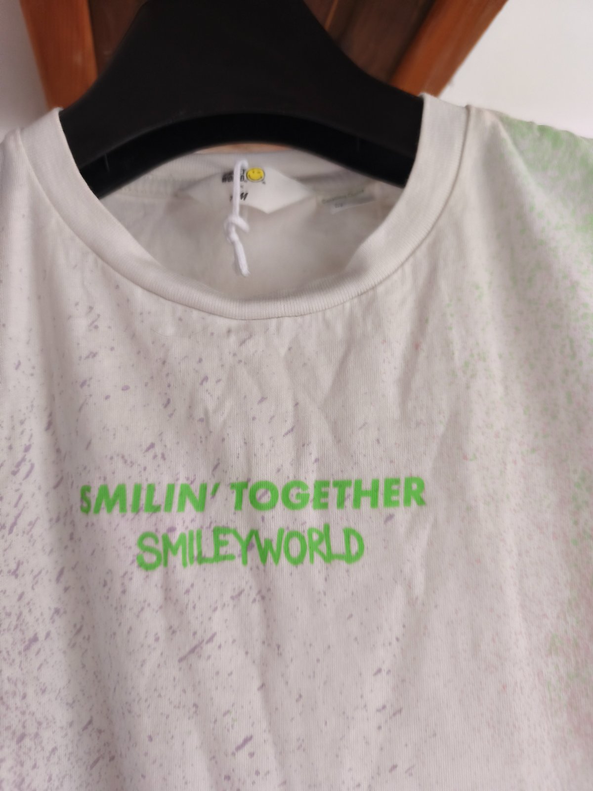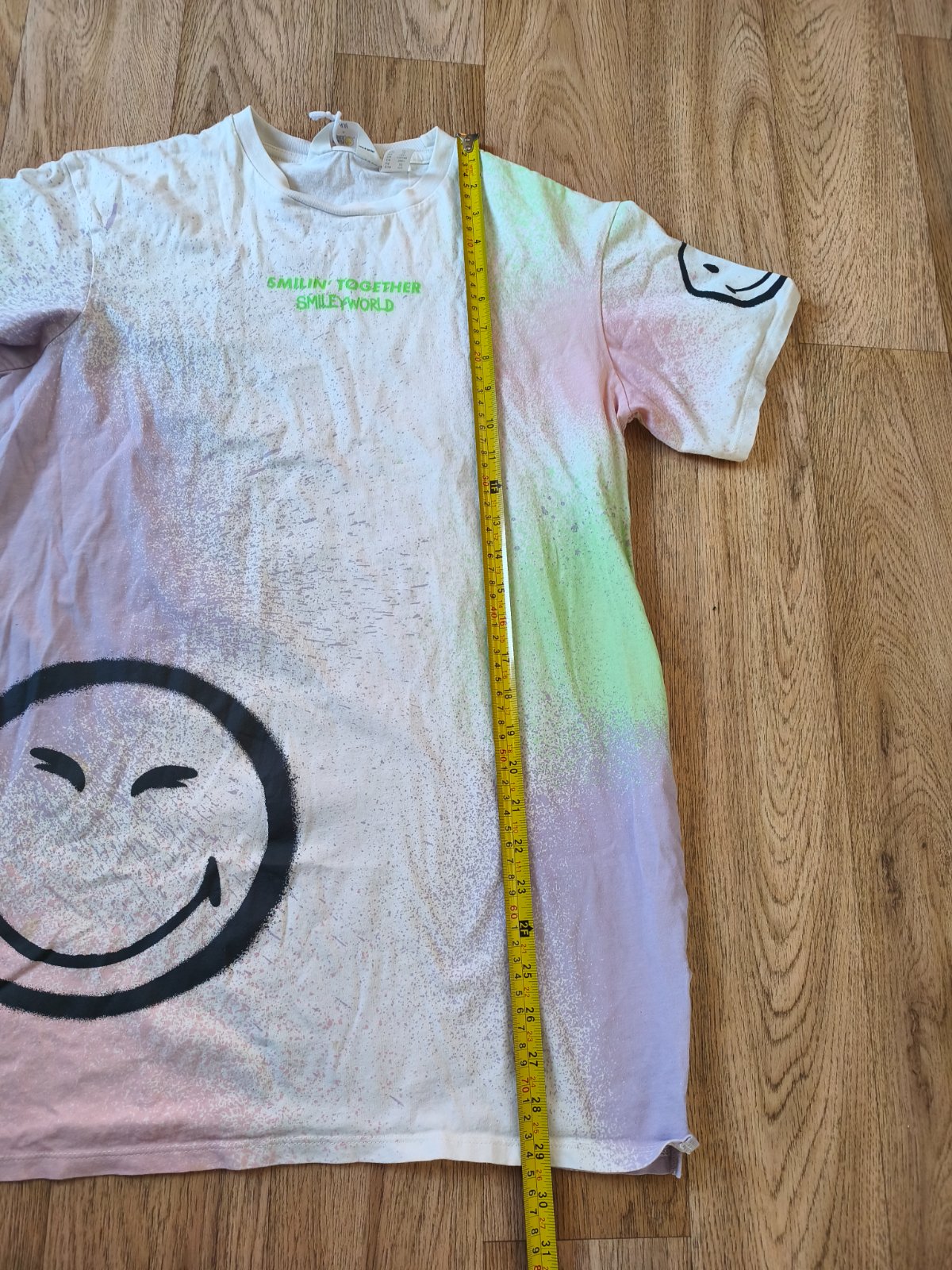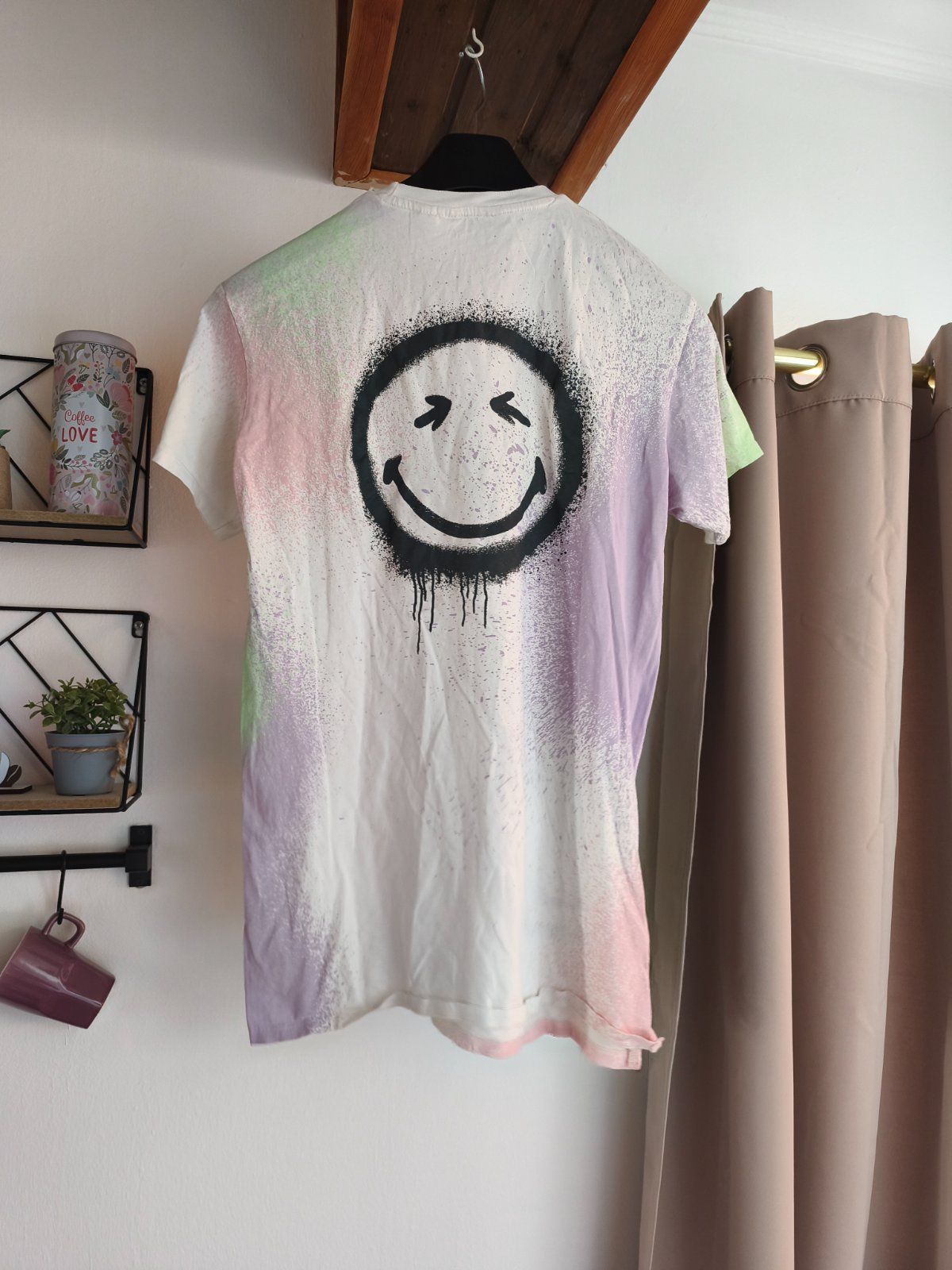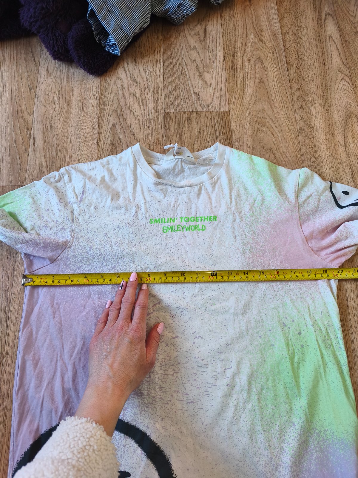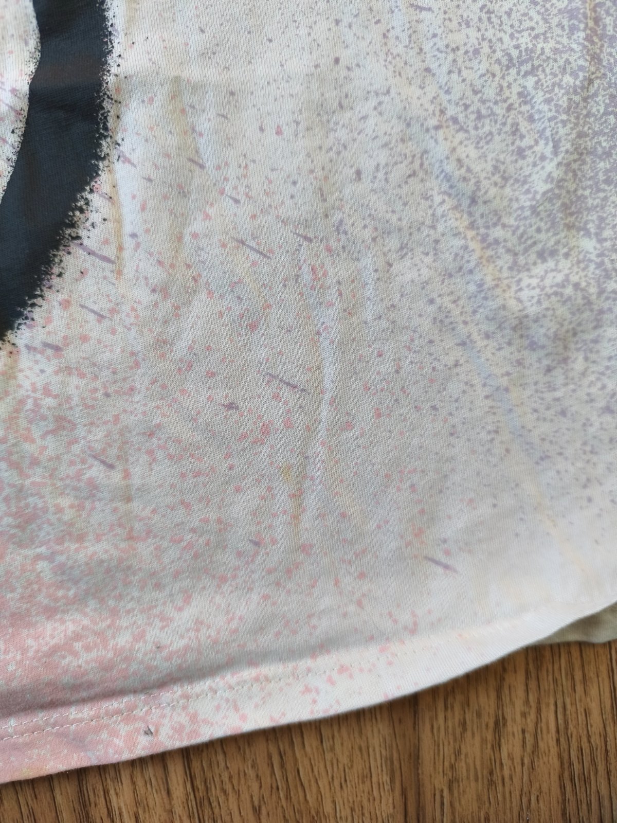Jednou prané oversize maxi triko na spaní, vel 170, sedí i XS-M. Pastelové barvy. Našla jsem nepatrný nažloutlý flíček.