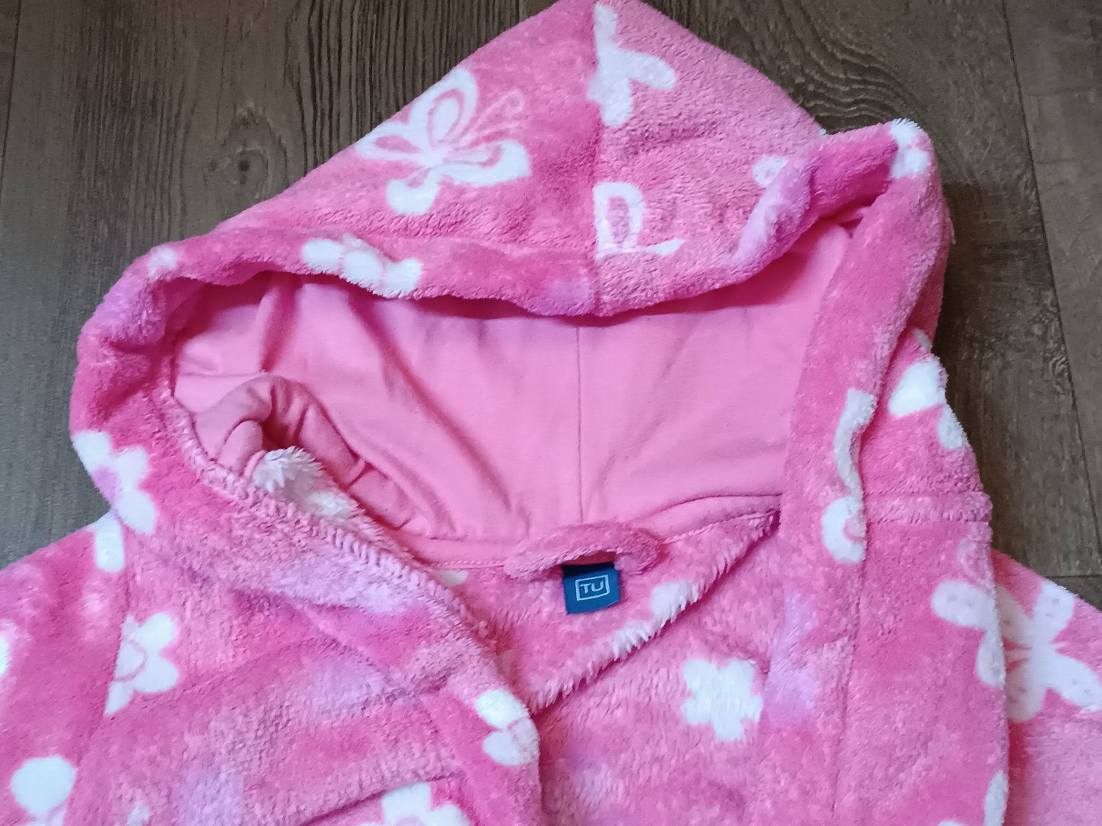Nabízím dívčí fleecový župan, zn. Tu, vel. 98/104. Růžový, s motivem motýlků a květin. Heboučký, teplý, příjemný na dotek, bez vady, jako nový.
