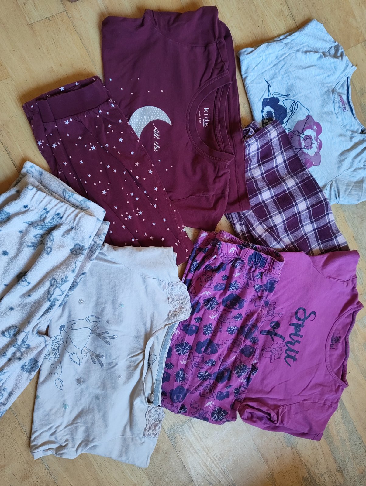 Krásné pyžamko s jednorožcem, kupované nové, stále v hezkém stavu. Kalhoty Délka: 69 cm Z rozkroku: 52 cm Tričko Délka: 47 cm Délka rukávu od krku: 53 cm, z ramene: 42 cm