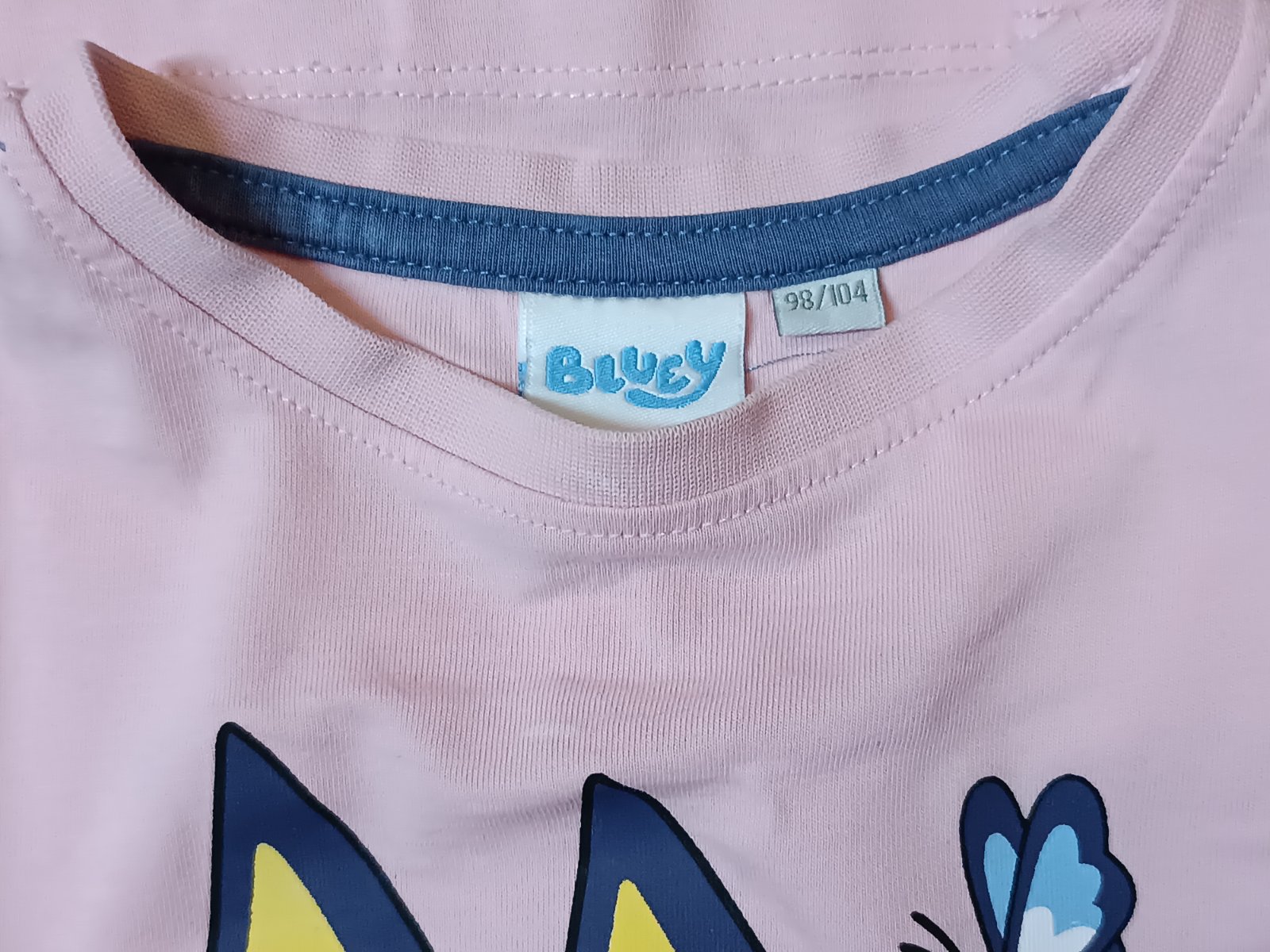 Nabízím dívčí pyžamo,zn. Bluey, vel. 98/104. Dvakrát na sobě, bohužel se rozpáraly kalhoty - viz poslední foto. Uvádím pro pořádek. Horní díl pyžama jako nový, možné nosit pouze jako tričko.