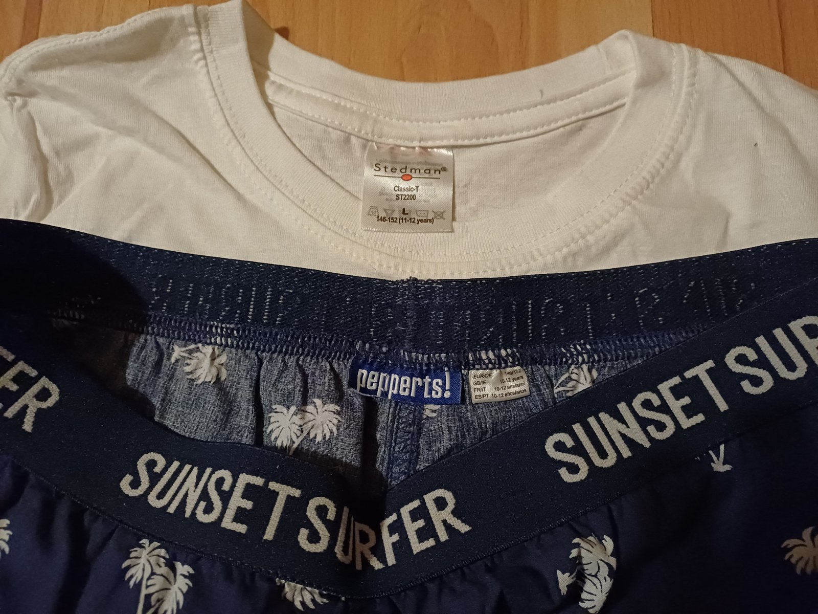 Pyžamo je jen po dceři, měla ho párkrát. V super stavu. Triko s KR. rukávem, gatě jsou dlouhé - tenké plátýnko, nepruží. Kupované v Lidlu.