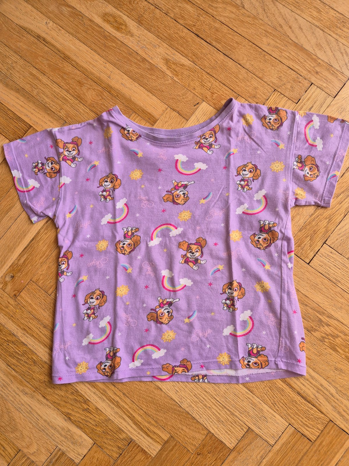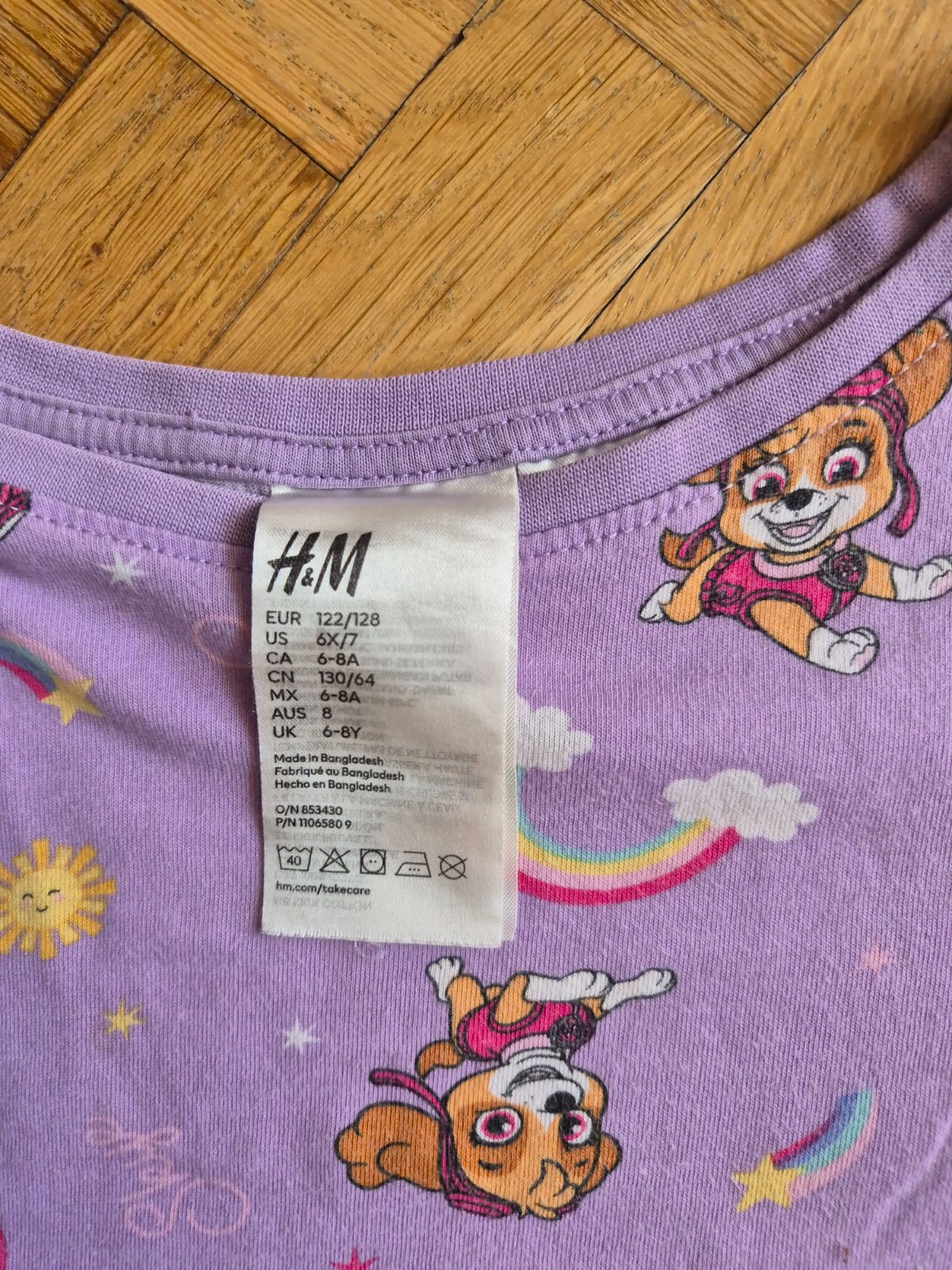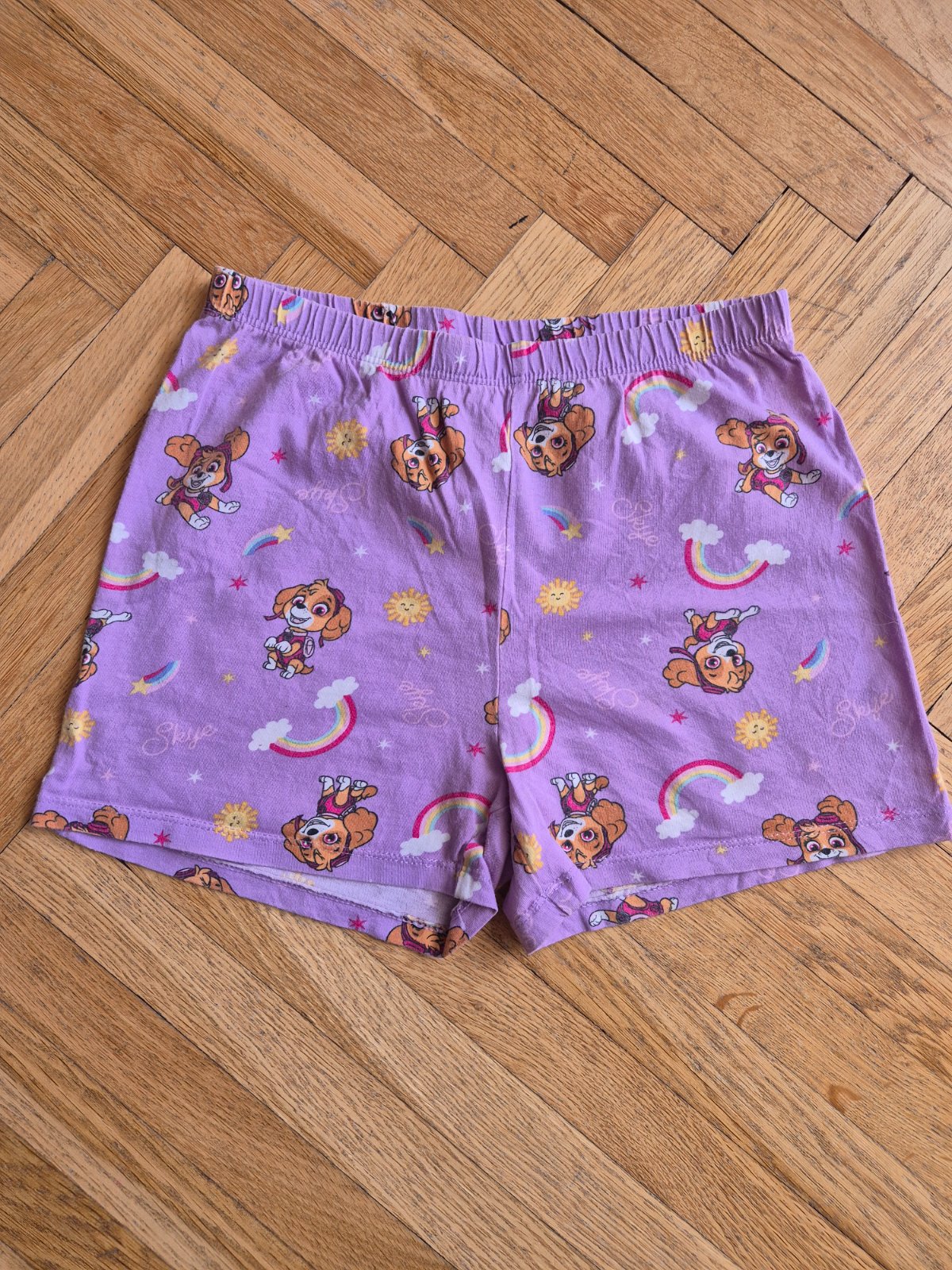 Dvojdielne pyžamko s krátkym rukávom a šortkami. Veľ. 122/128. Pružný pás, triko biele, šortky ružové. Materiál: 100%bavlna. V perfektnom stave, veľmi málo používané. Rozmery - triko: dĺžka 46 cm, ...
