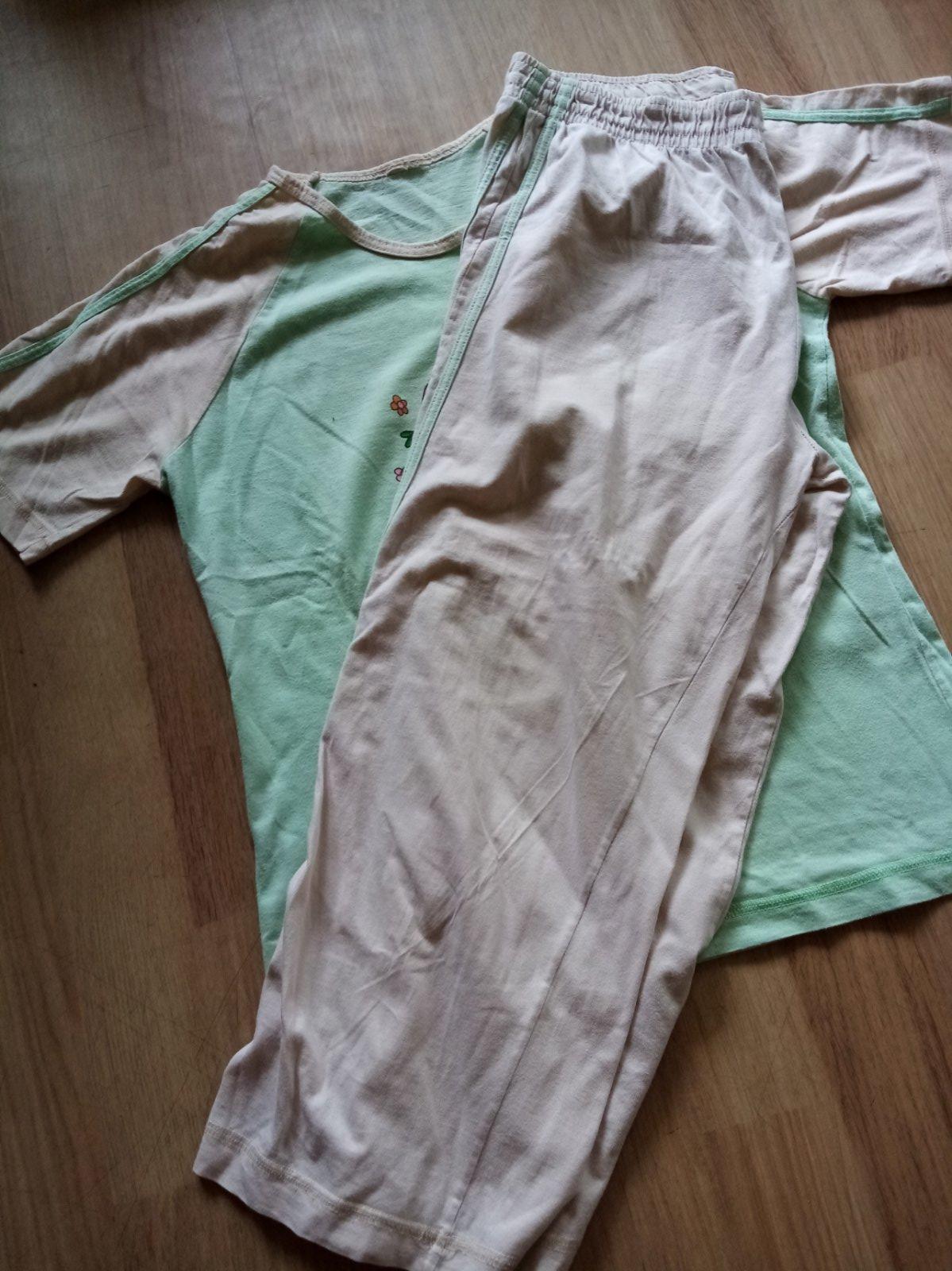Hezké nezničené pyžamo. Kalhoty 3/4 délka. Velikost S-M. Běžné známky nošení. Nošeno jen na doma,na spaní ne. 100% bavlna.