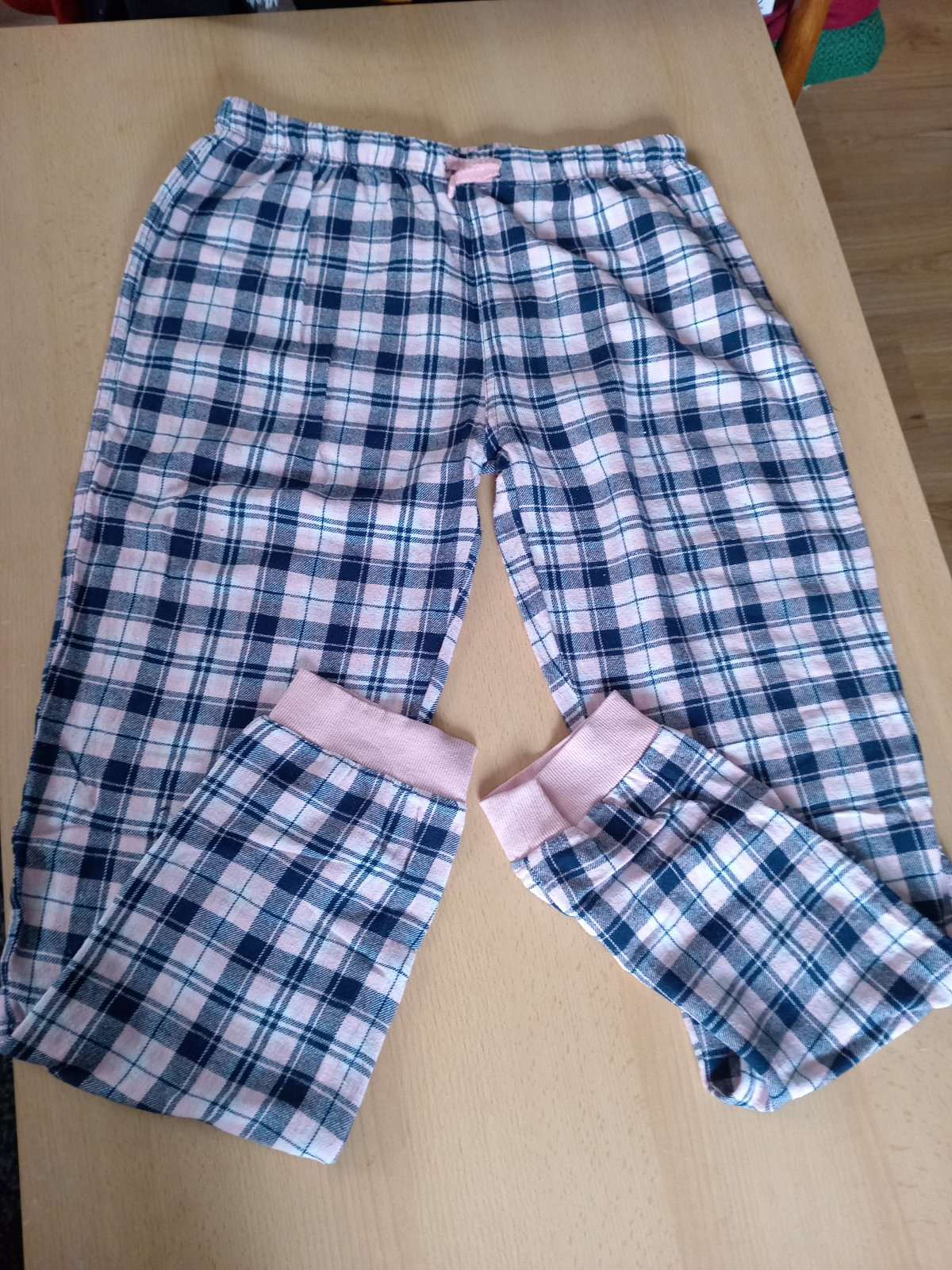 Domácí oděv / pyžamo vel.158. Délka horního dílu - 59cm, šíře pod rukávy - 40cm, délka kalhot - 87cm, šíře pasu - 32 cm. Osobní odběr nebo poštovné ( Zásilkovna , Balíkovna - dle aktuálního ceníku)