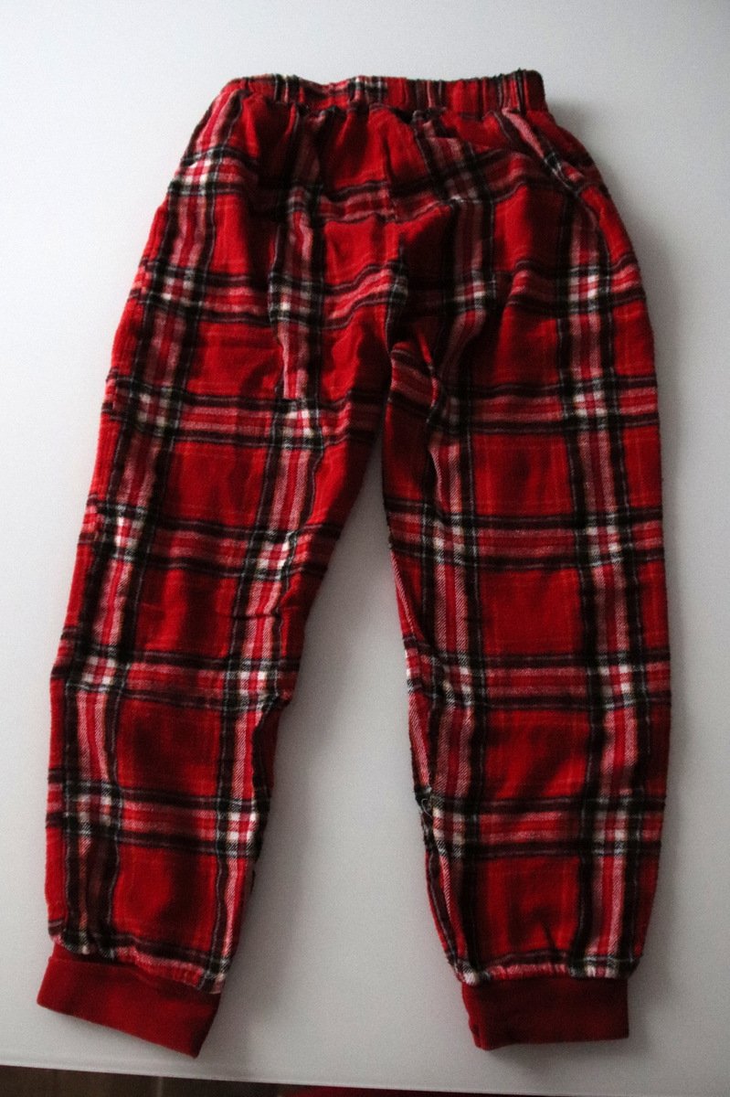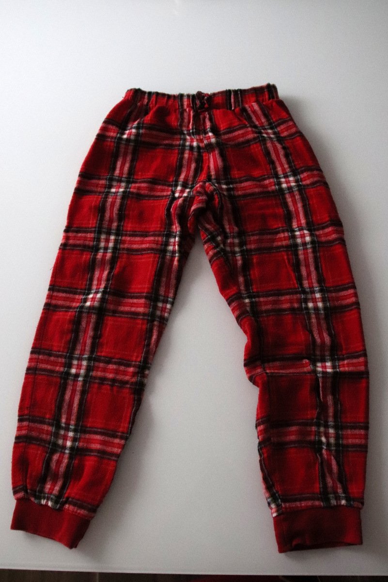 Jde o set různých značek, lze nosit jako tepláčky a triko, ale my užili jako pyžámko, gatě šedé MARKS+SPENCER, dole potisk hvědiček, materiál 56% bavlna, 40% polyester, 4% elastan, trochu prací kul...