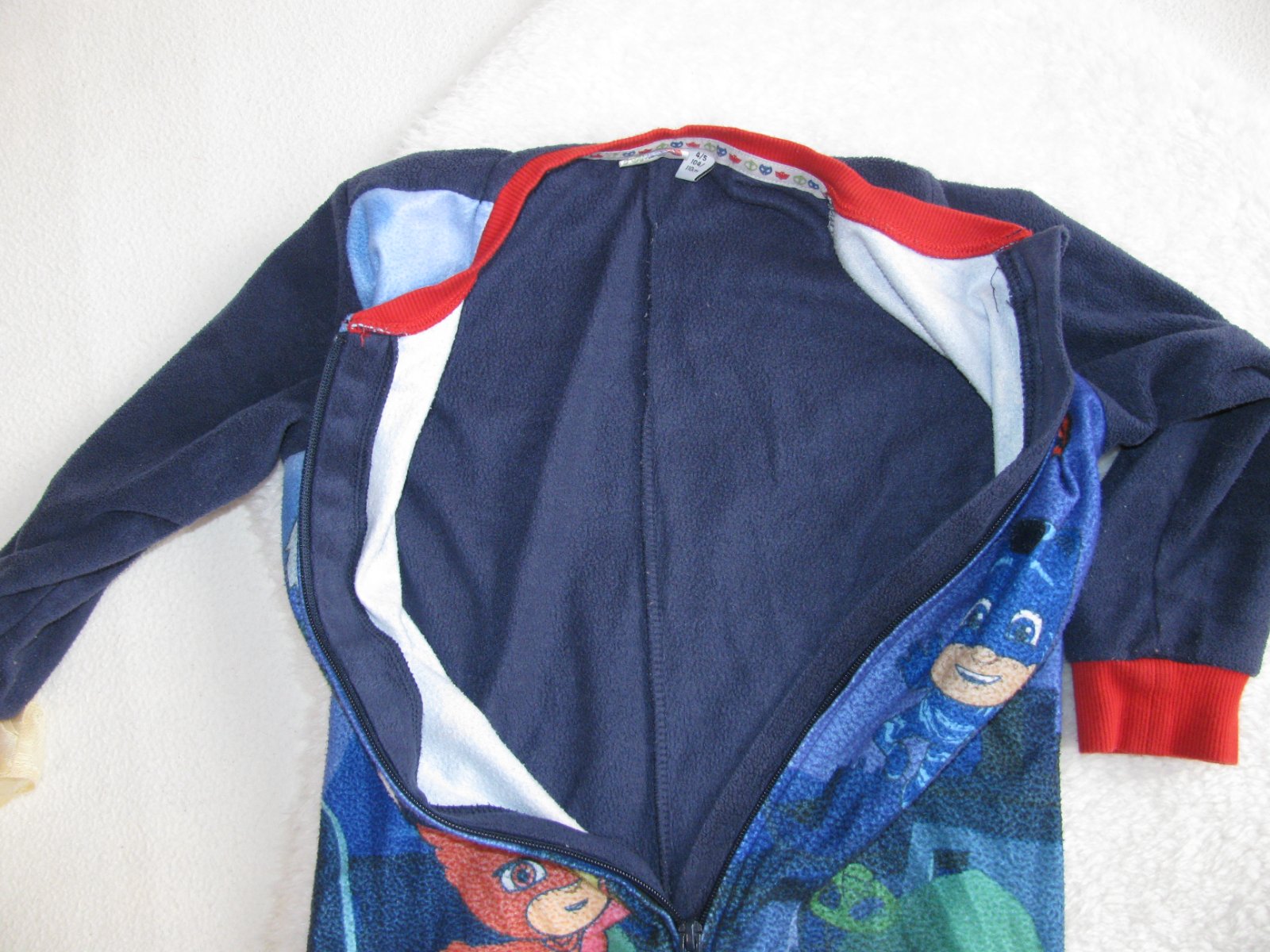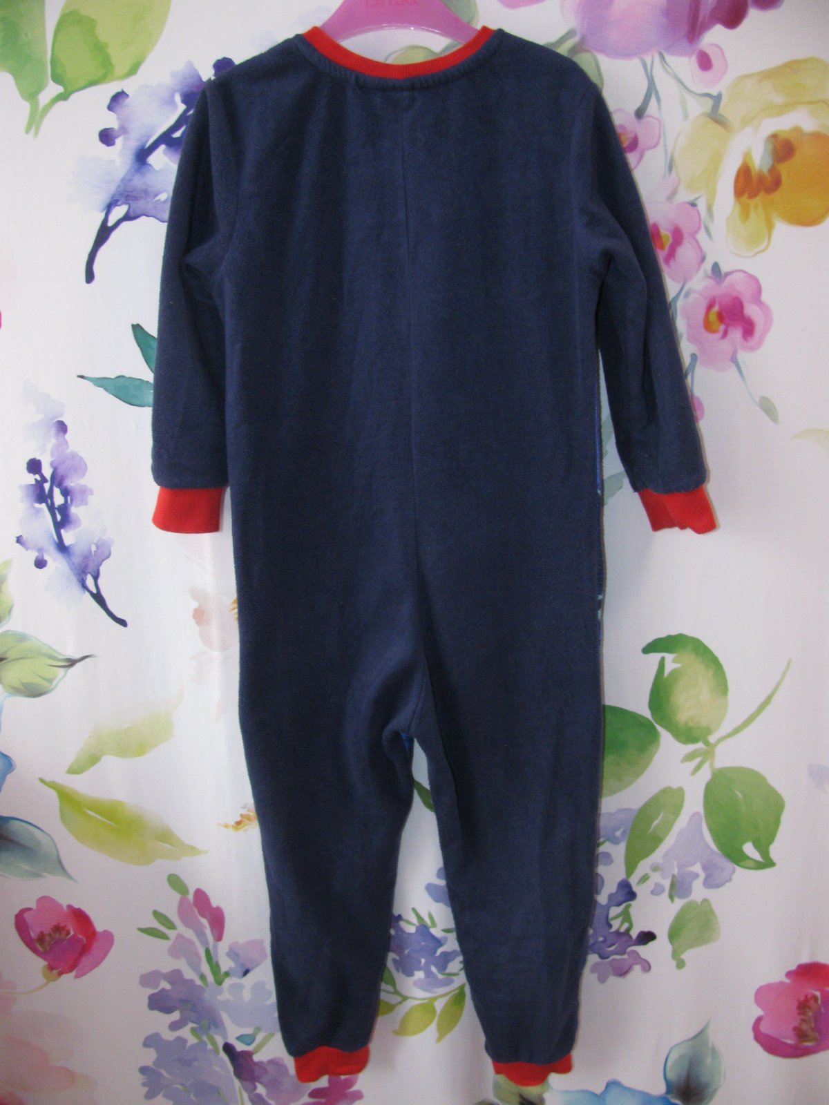 Hezký chlapecký spací overal, konce do nápletu, dlouhý zip, krytý pod krkem, 100% polyester. Hezký stav bez vad.