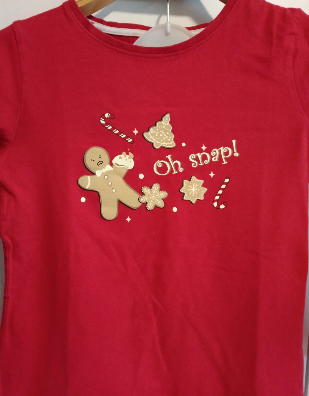 vánoční bavlněné pyžamko, zn. Zara, vel. uvedena 130, 8-9let vršek téměř nenošený, barva na kalhotách opraná, jinak bez vad top: délka 46/50cm, šířka 42cm, rukáv 41/49cm tepláčky: měřte: délka 50...