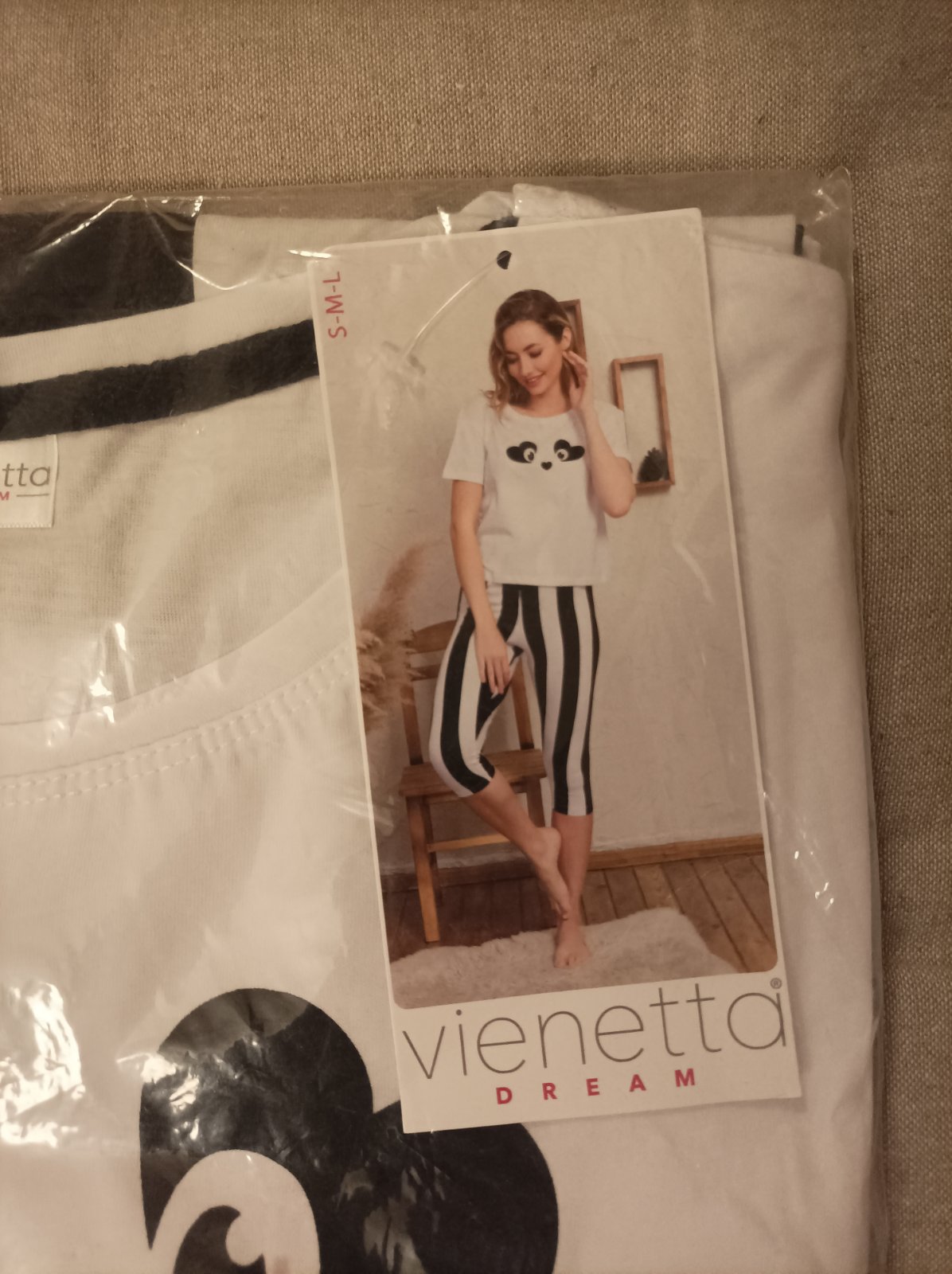 Dámské capri pyžamo - tričko s krátkým rukávem a tříčtvrteční kalhoty, vhodné i na denní nošení. Pyžamo je nové, originál zabalené, i s visačkou, uvedená velikost S.