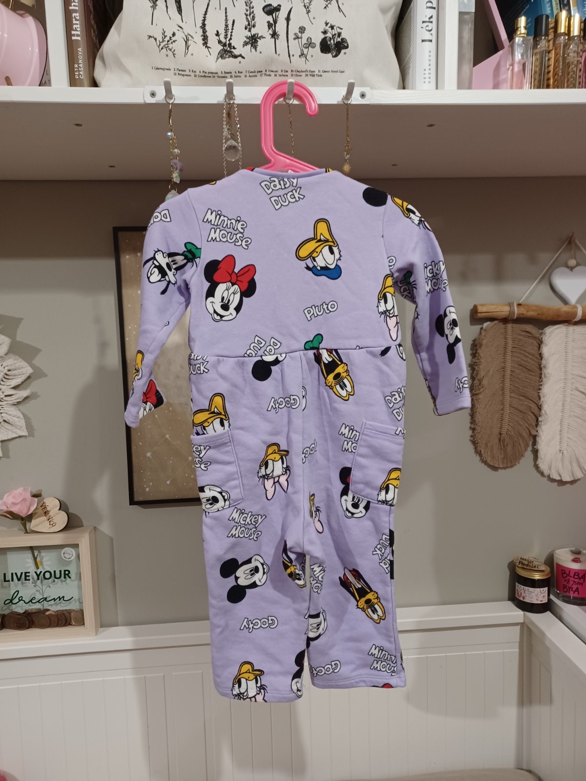 Krásný zateplený overal Disney z H&M bez ťapek, uvnitř příjemný chloupek. Běžné známky praní. Vel.86, klidně i 92.