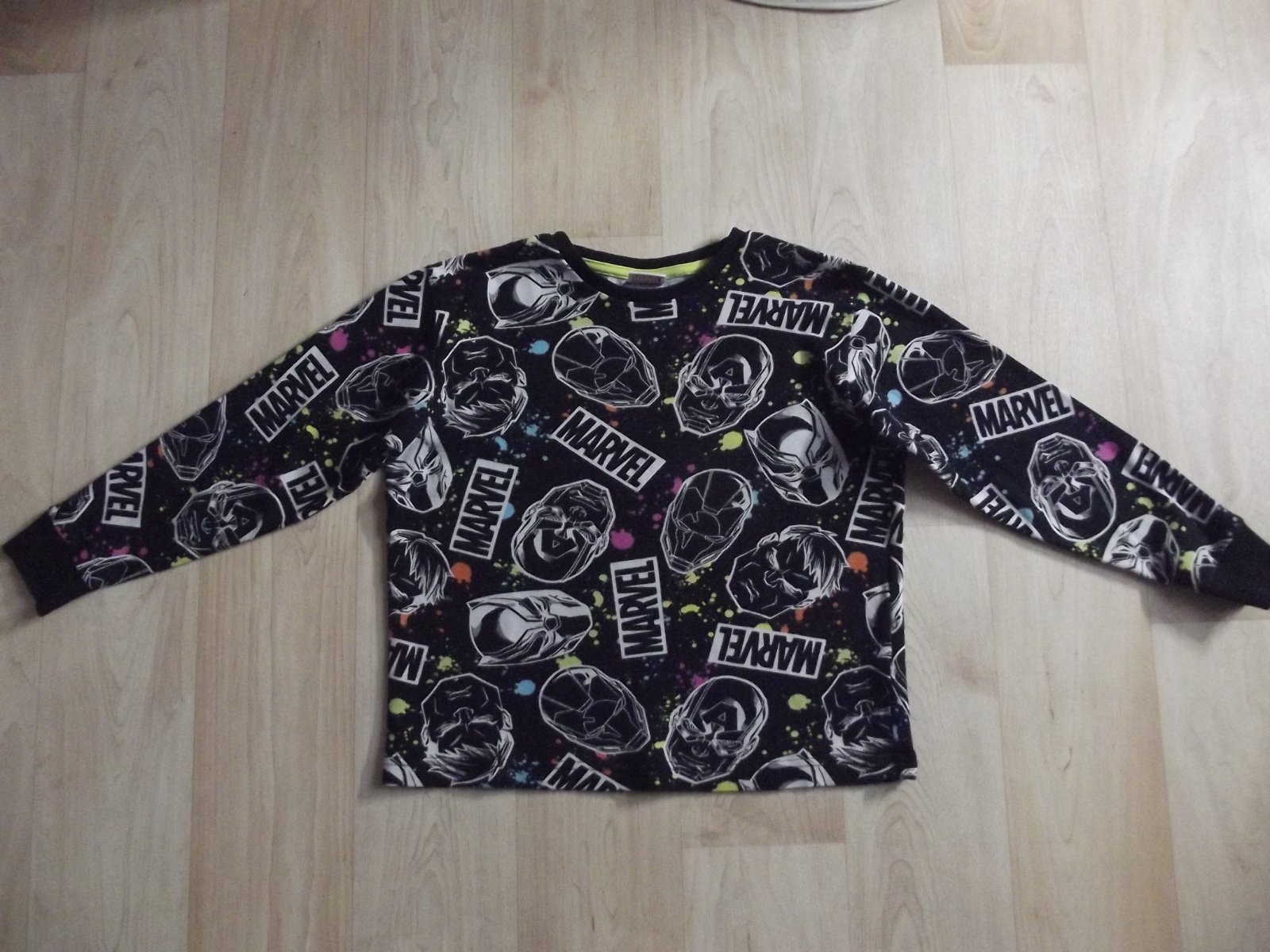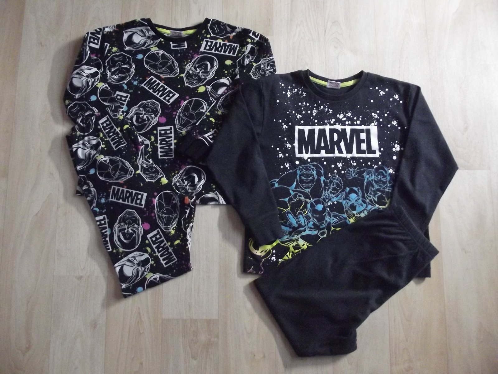 Pyžama jsou nošená jen synem. Velikost je psaná na 10let, ale neodpovídá, proto dávám v.134. Délka rukávu od krku 52cm, délka zad 42cm. Pas 2x28cm, vnitřní délka nohavice 50cm, boční délka 74cm. Cena je za obě. Cena + balíkovna 75kč, zásilkovna 89kč.