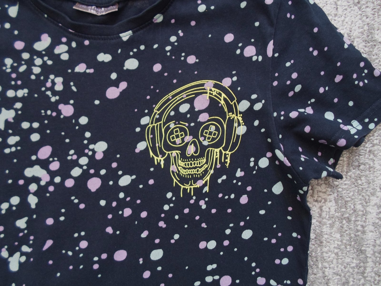 Ve skvělém stavu bez vad na kraťasech zepředu u švu zašité prasklé očko viz foto. Vel. 146/152, ale řekla bych, že menší. 100% bavlna.