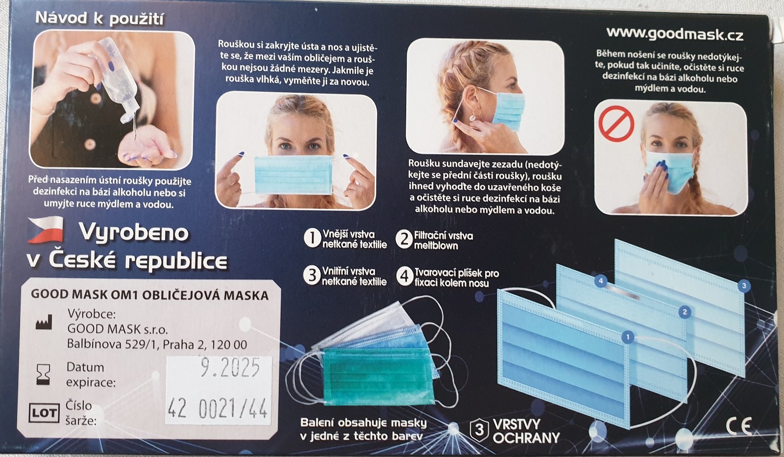filtrační polomaska k ochraně před vdechováním částic, včetně virů a bakterií.