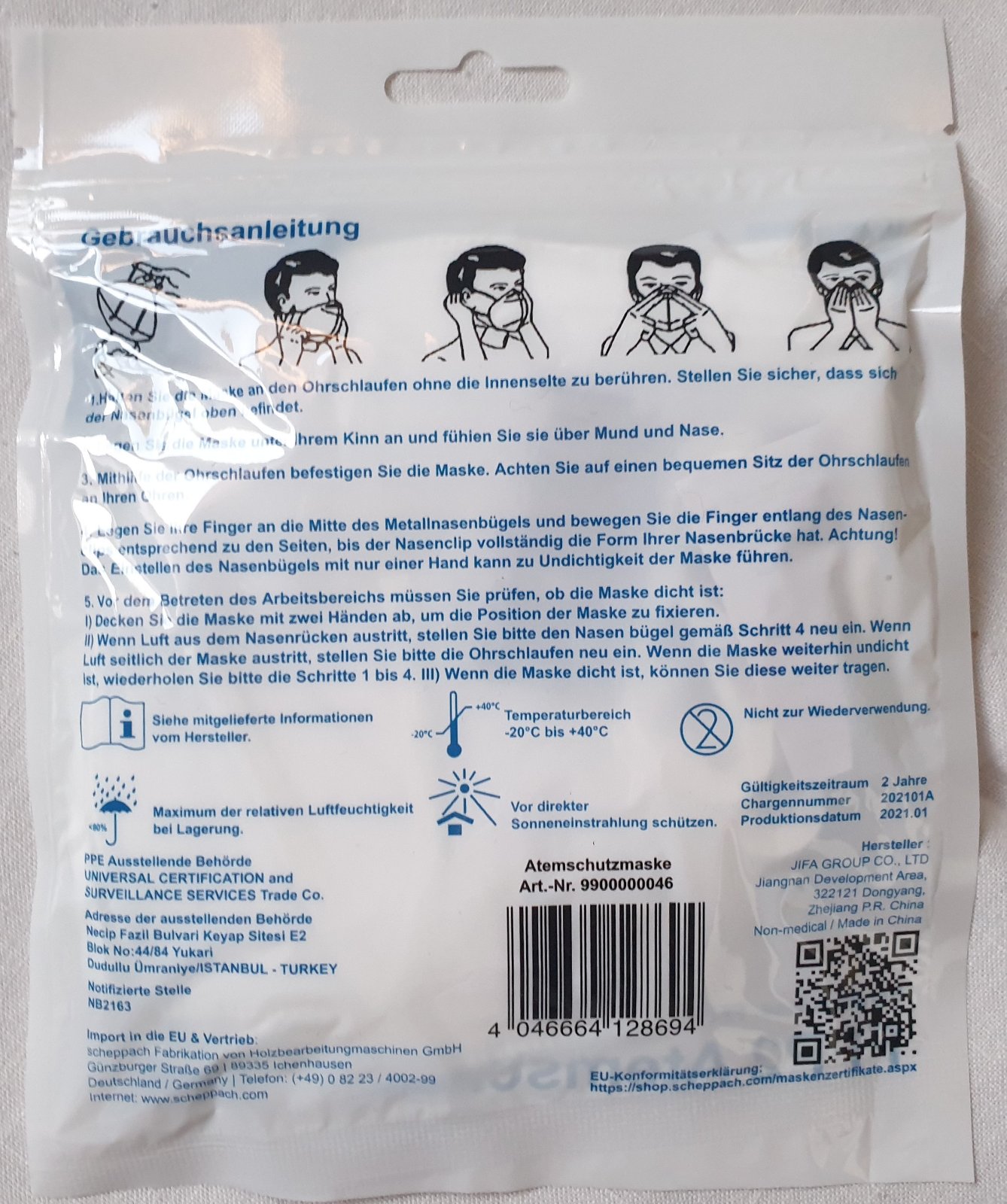filtrační polomaska k ochraně před vdechováním částic, včetně virů a bakterií.