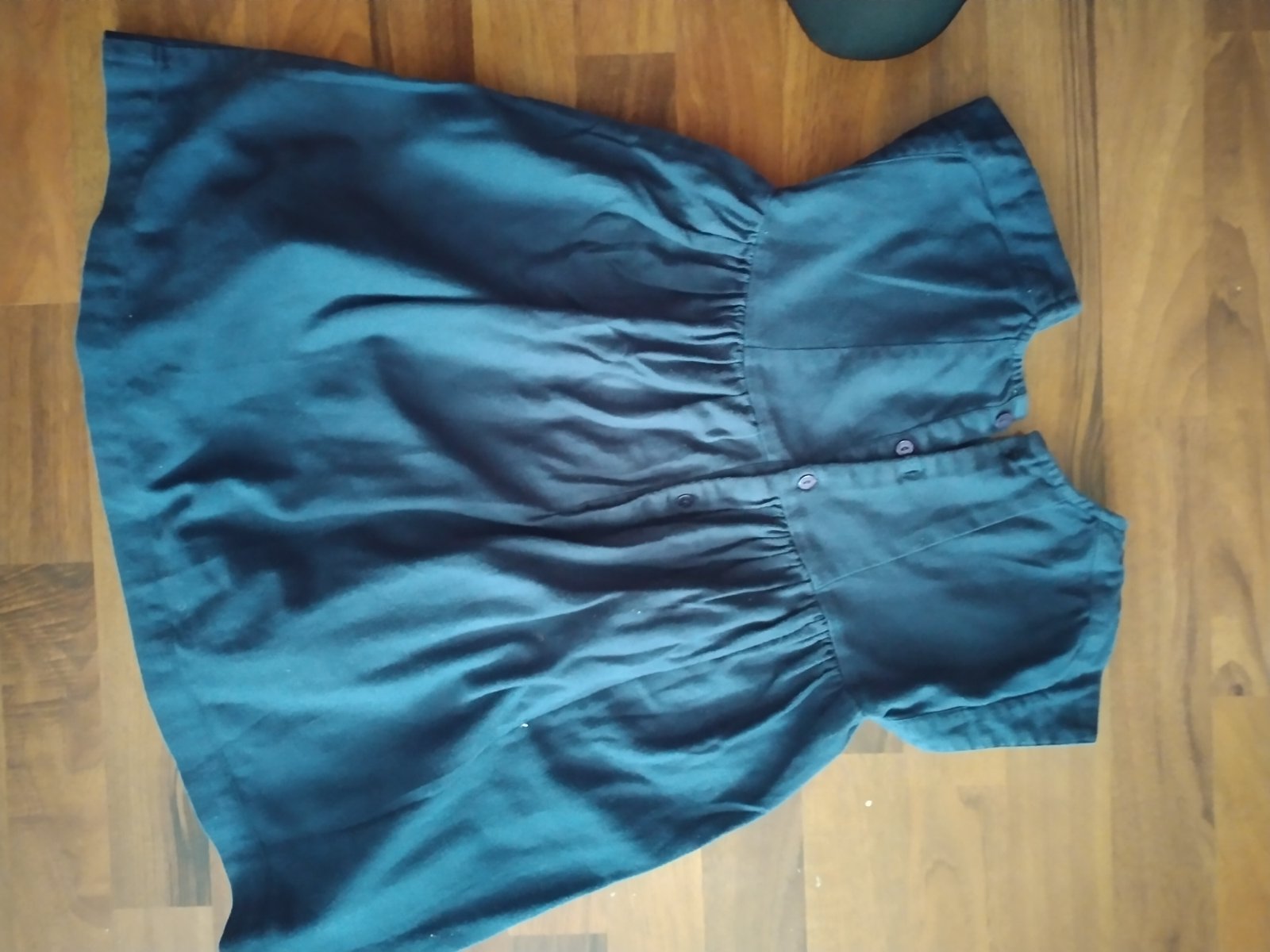 Nevyužité, pozdní nákup, bavlněné šaty z odlehčené, letní rifloviny, zdobné knoflíčky, zdobně ohrnuté rukávy, dole vyšité logo, pas, volnější guma, vel. 9 let, ale jsou spíš menší, měřte, d. 63, š....