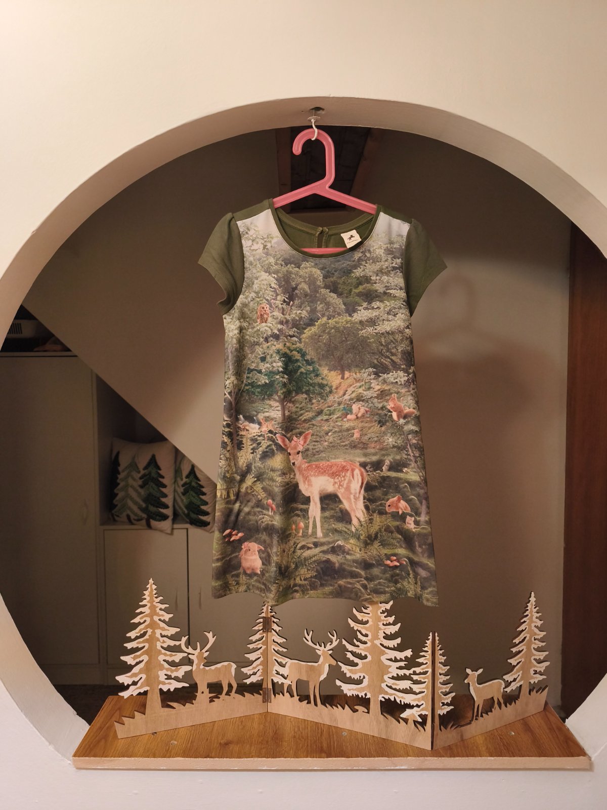 Khaki šaty se srnečkou, c&a,134
