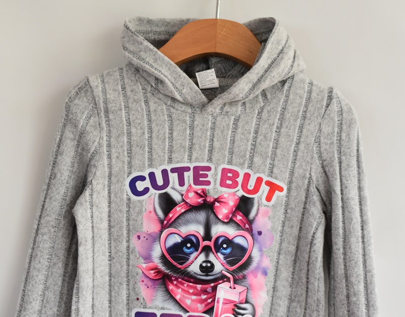 VELMI DOBRÝ STAV – oblečení nese známky nošení a praní, jako patrnější chloupek, mírně opraná barva, žmolík jen na lemech,