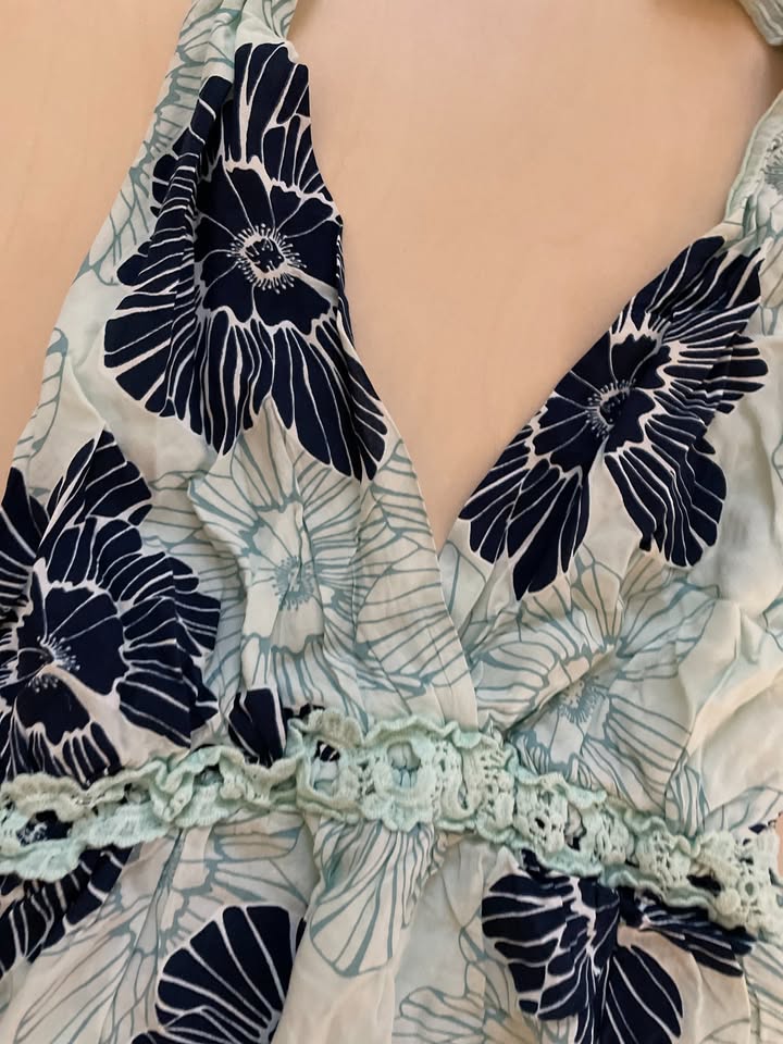 Modré letní šaty s květy, vel neuvedena cca S/M