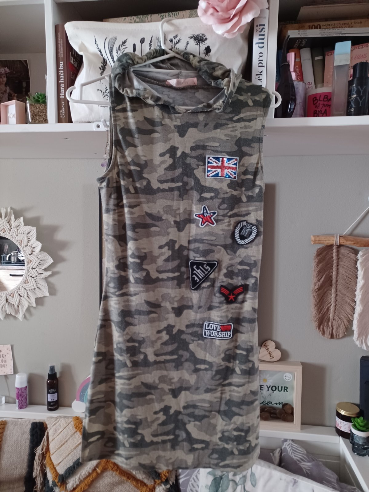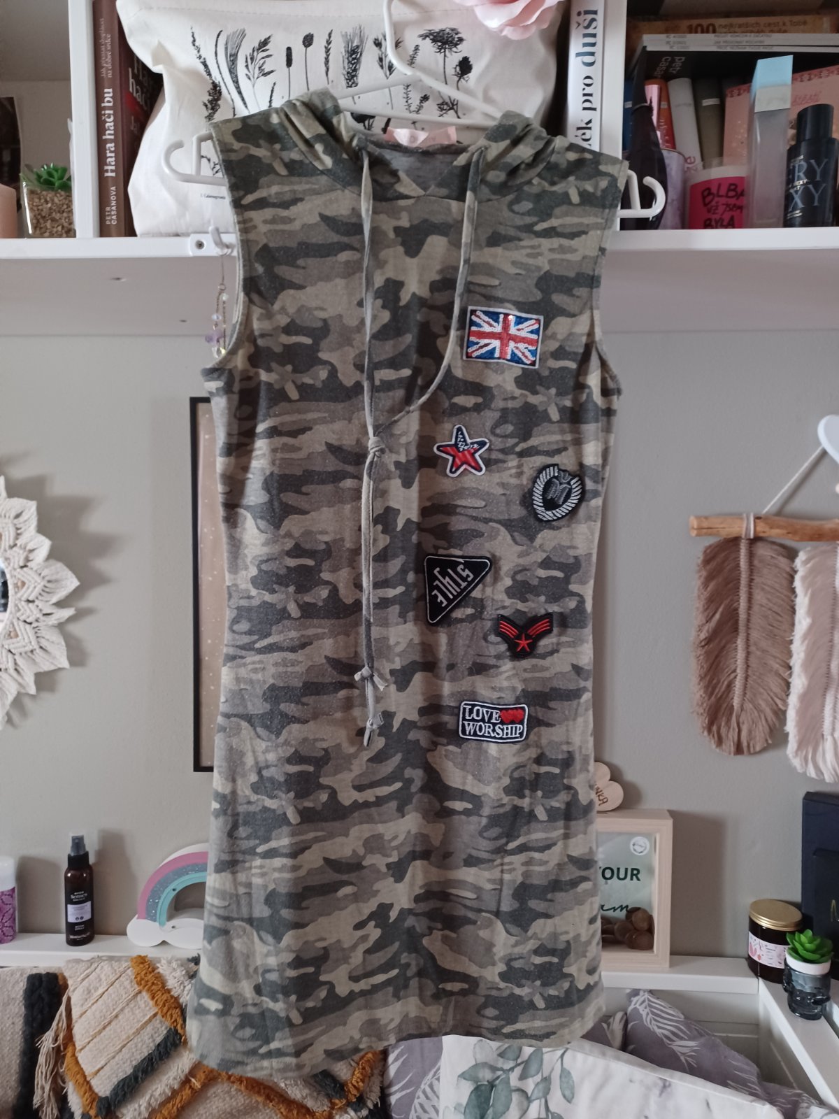 Maskáčové šaty tunika s kapucí 158/164, XS/S
