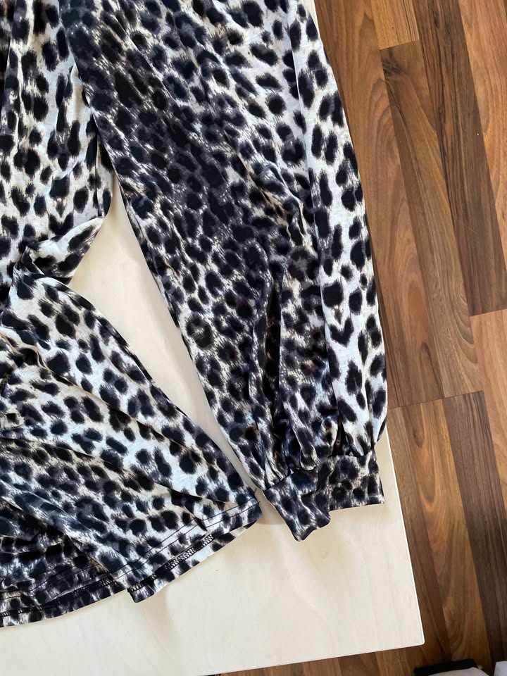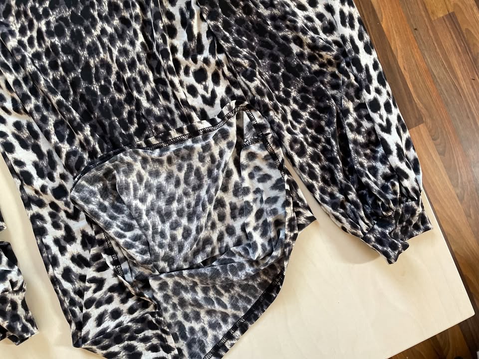 1207. nabízím k prodeji tyto nové šaty s motivem zvířecí srsti, vel L (myslím možno i méně do pásku), Stella. Příjemný, lehce pružící materiál - 92% polyester, 8% elasten.Rukávy široké, balonově podkasané do manžet. Nové, bez vad, krásné