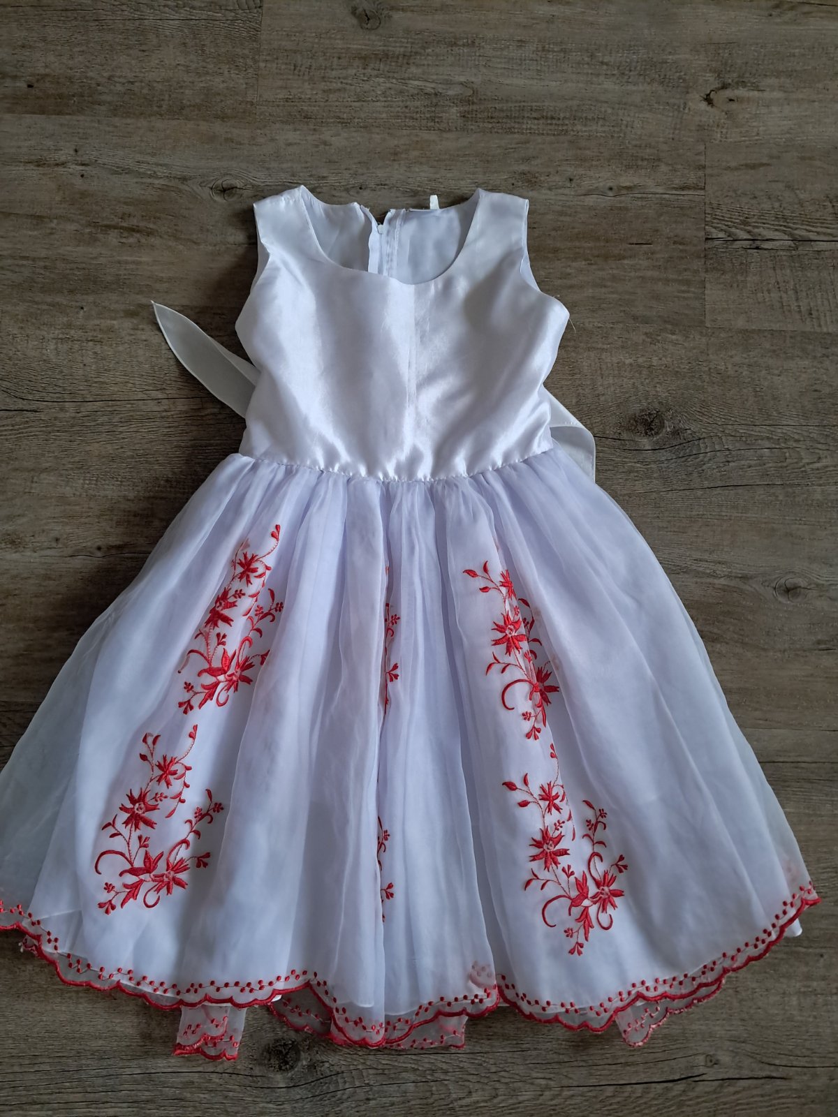 nádherné, bohatě vyšívané šaty, tylová sukně se spodničkami, živůtek saténový, velká vazačka, velikost 80