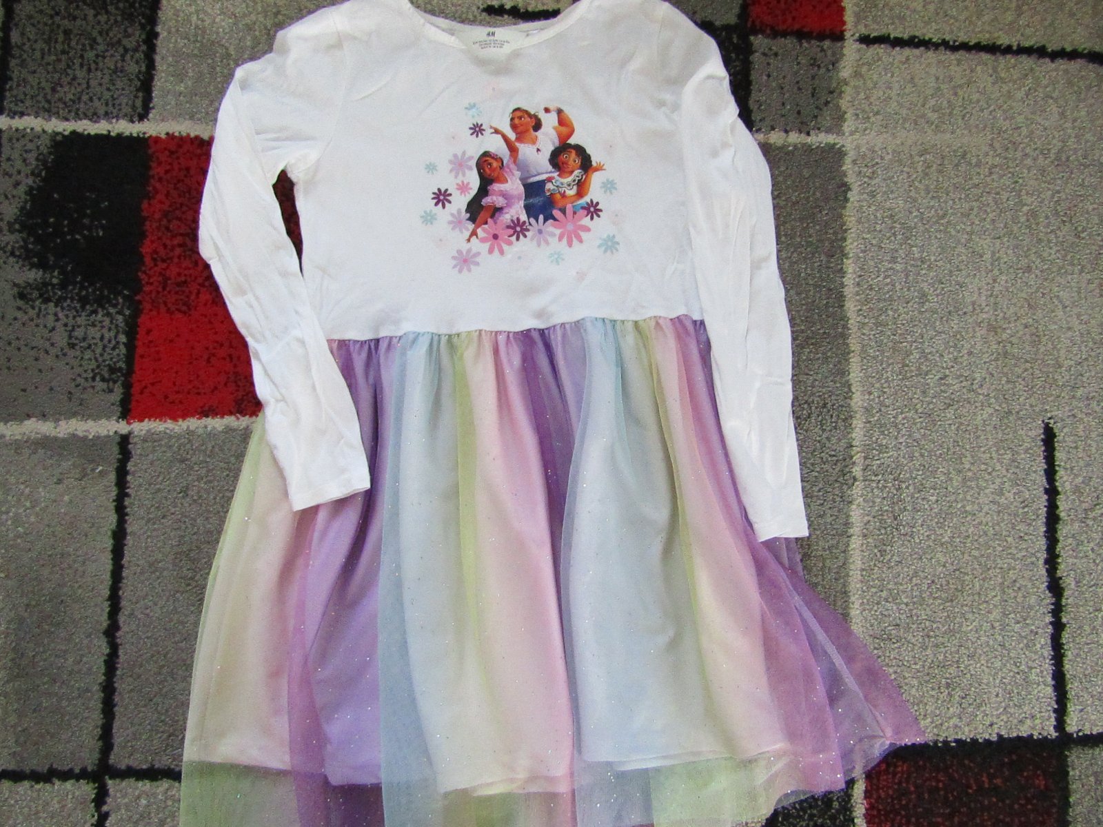 Šaty pro holku zn.H & M-ve.134/140- Encanto,délka šatů je 74 cm,průramky 37 cm,délka rukávu od ramene je 52 cm,na rukávu mají drobné světlé flíčky viz.foto-cena 140 kč