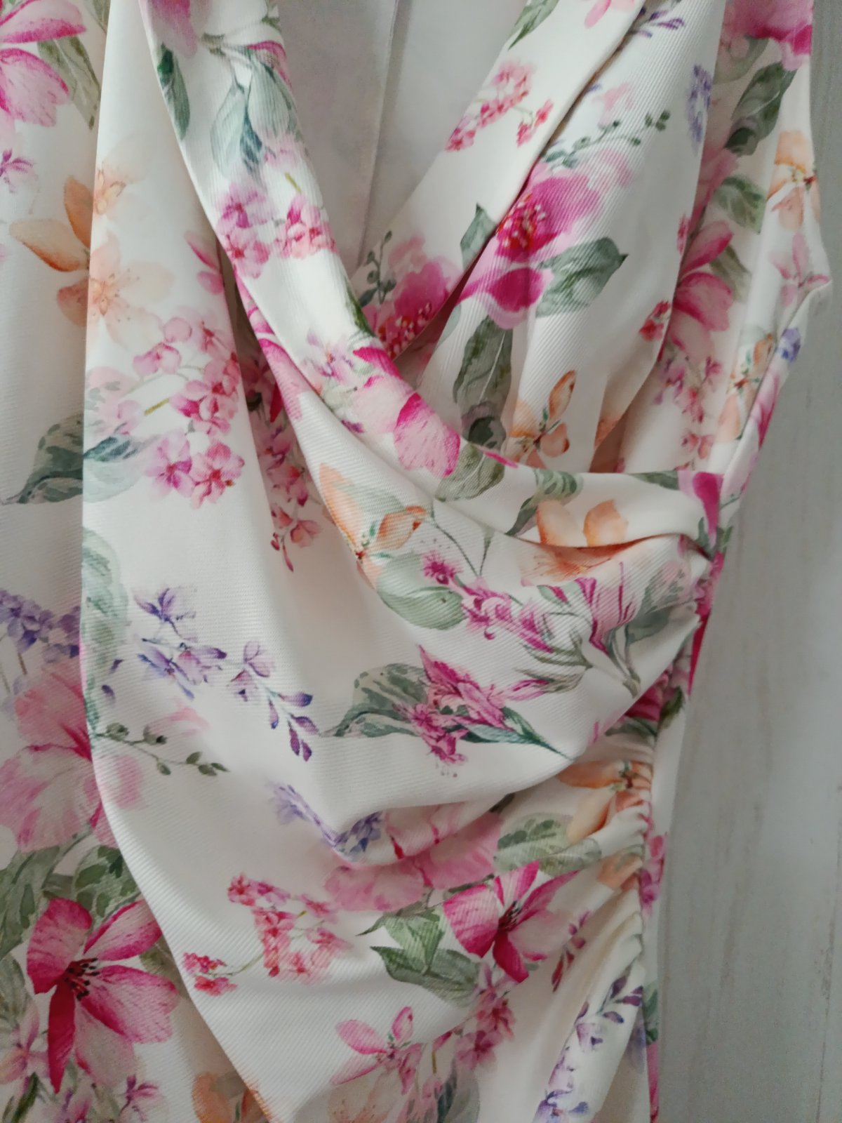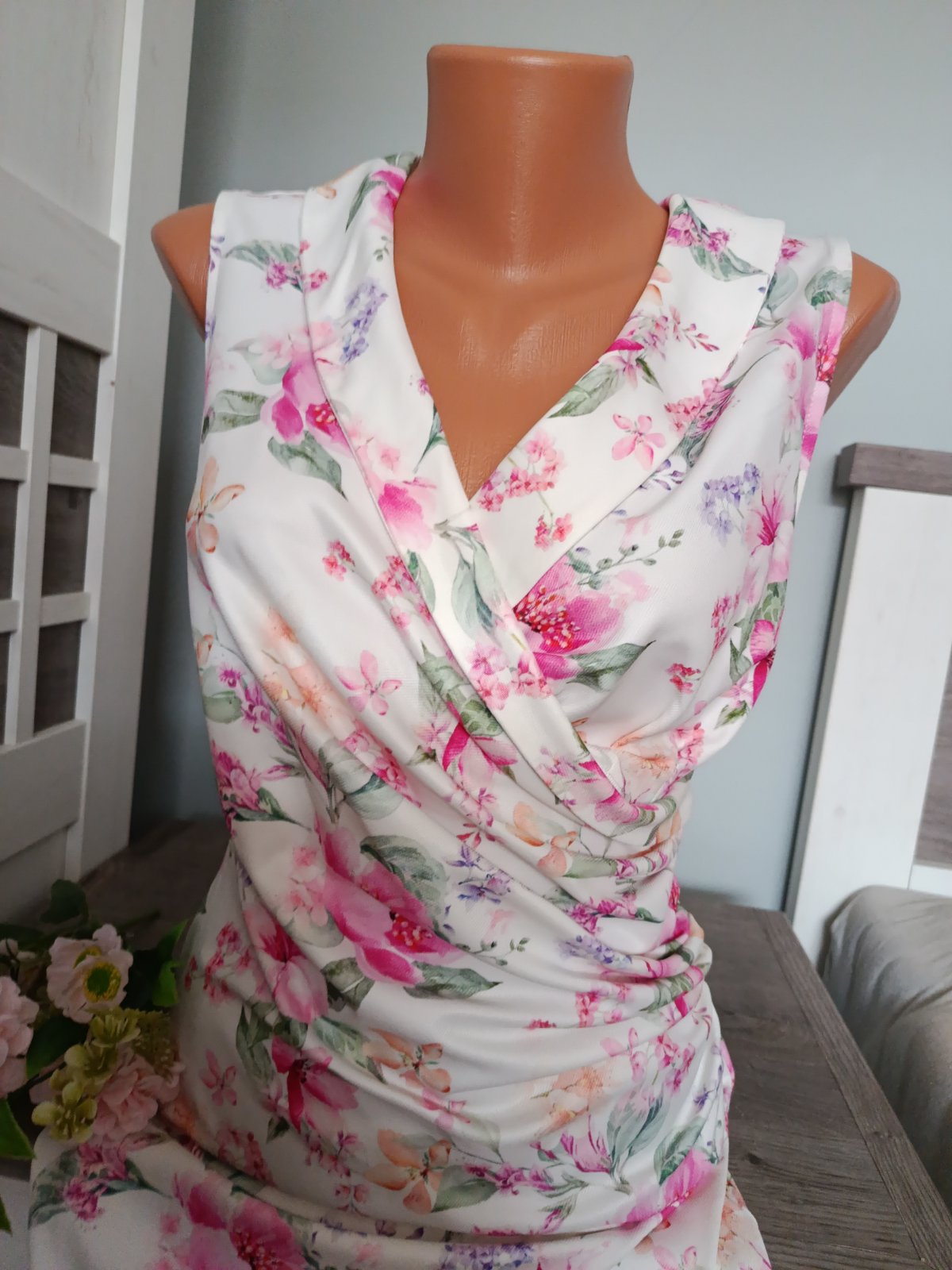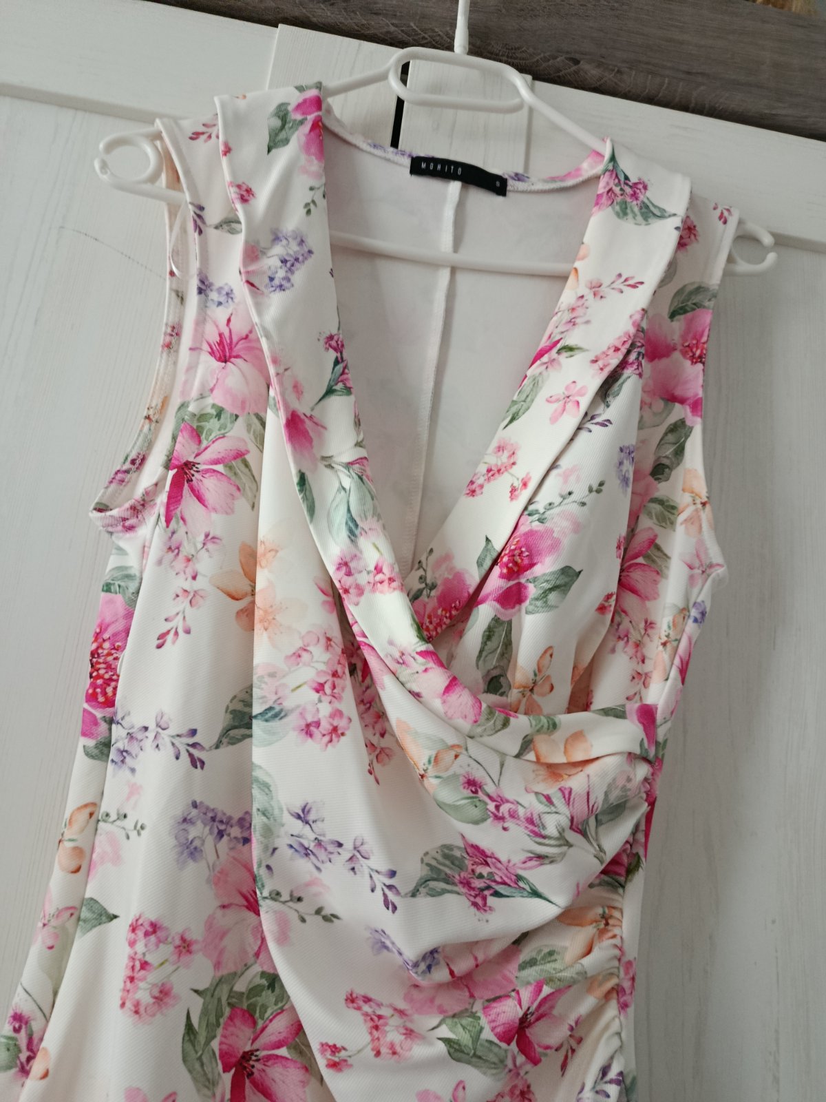 Pěkné elastické šaty s květy rovného střihu. Véčkový výstřih, na levé straně nabírané...Sexy výstřih, super obepínají postavu. Šaty jsou v perfektním stavu. Míry : délka 88, pas 2 x 33 cm - 2 x 43 cm - pruží, průramky 2 x 42 cm - 2 x 52 cm. Materiál : 95 % polyester a 5 % elastanu. Poštovné - balíkovna za 85 Kč nebo zásilkovnou za 90 Kč.