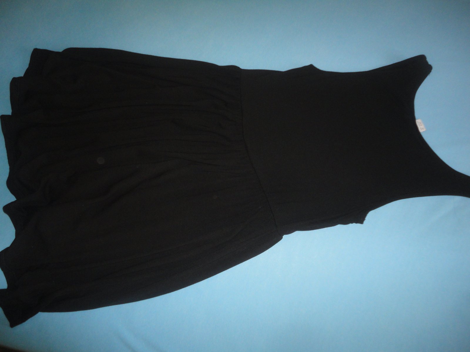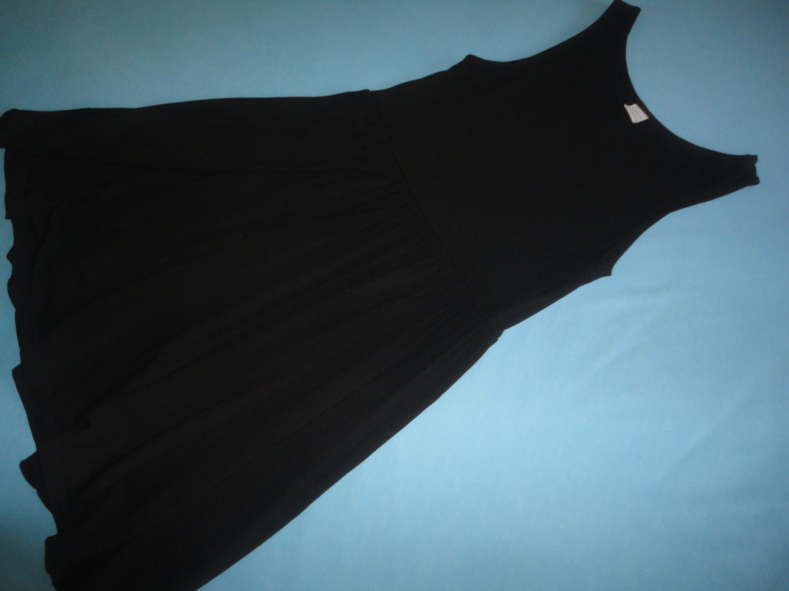 Sytě černé, krátce využité šaty na ramínka, přibraná sukeň, vhodné i na slavnostní akce, materiál 50% bavlna, 50% modal, d.78cm, od ramene po sukni 36cm, š. v průramku 36cm