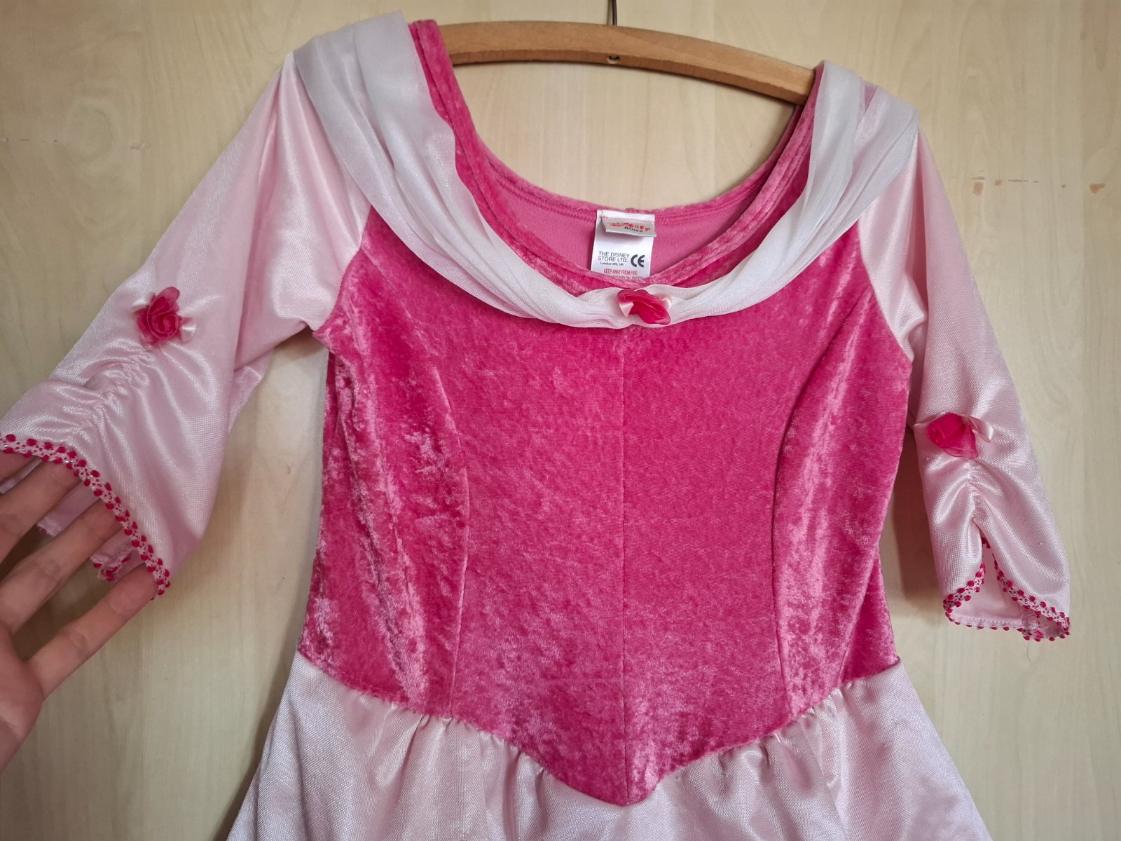 Světle růžové šaty s krajkovým živůtkem (krajka je přes látku). Sukně má více vrstev. Zn. HM, velikost 140 - rozměry na fotkách.