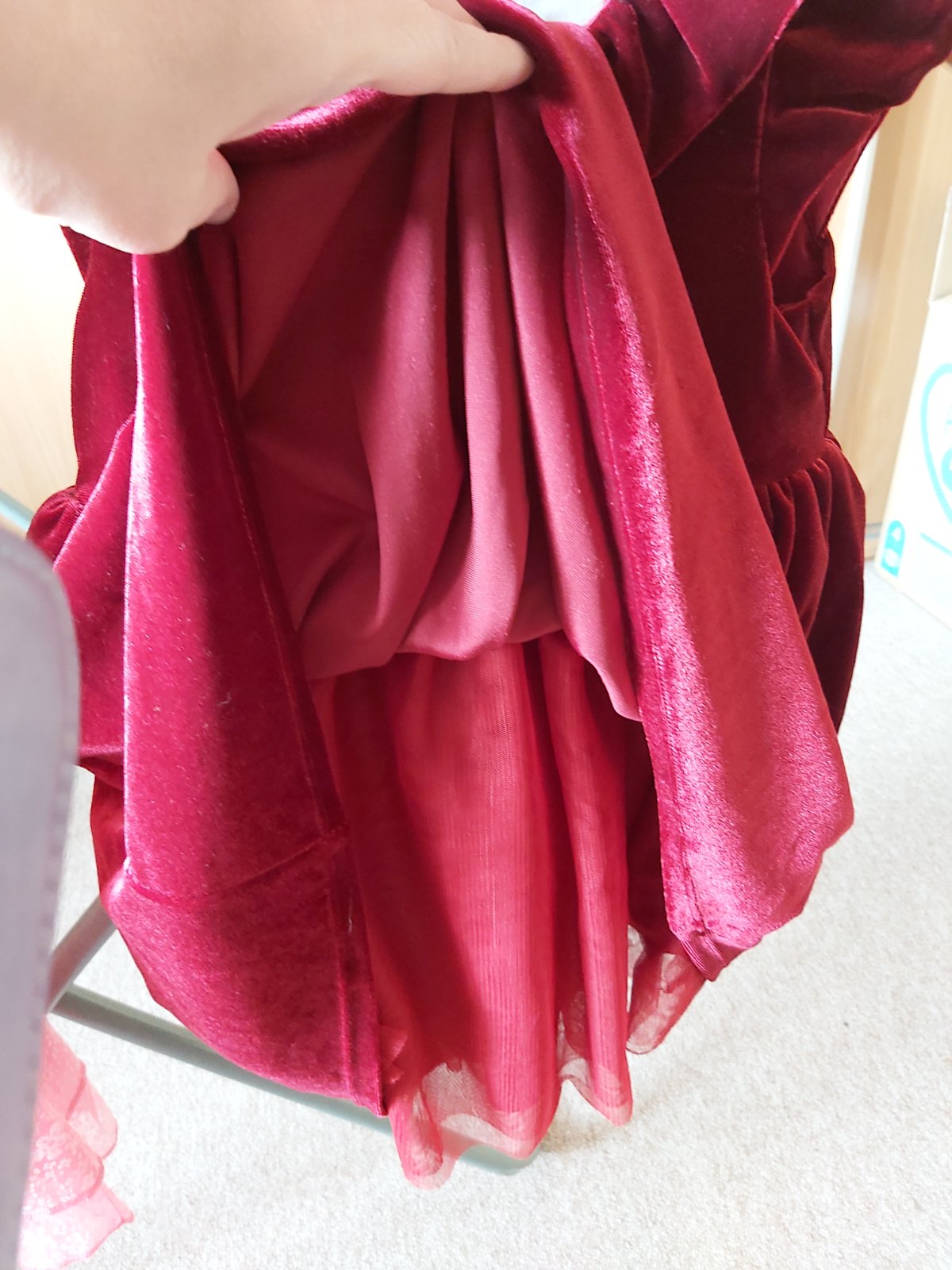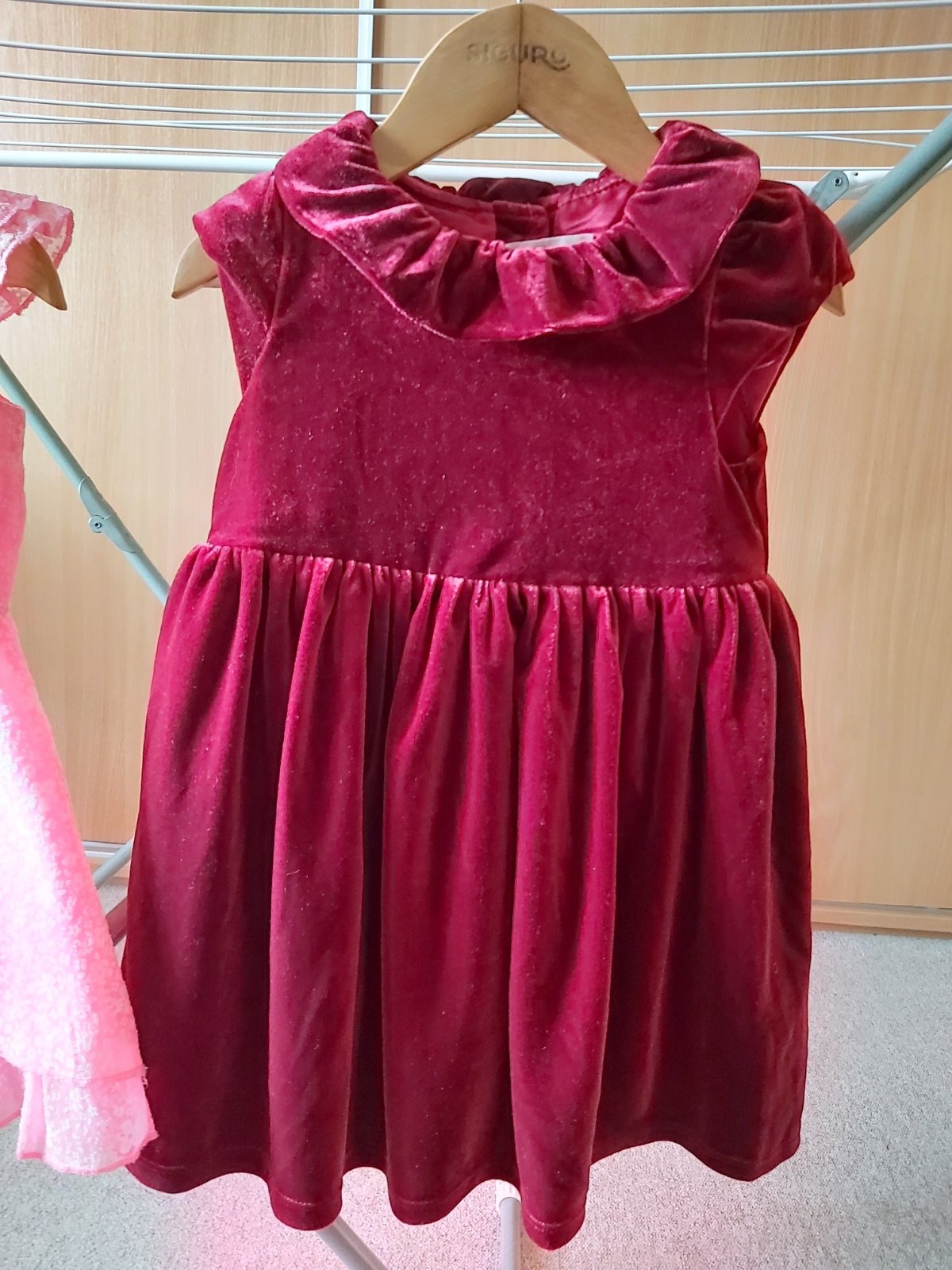 Červené v.86, opět sedí I větší výšce, sametové se spodničkou, dcera měla na sobě jen 2x.