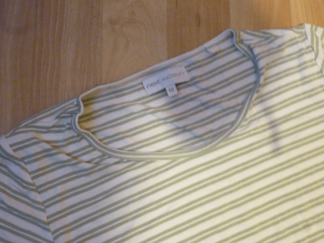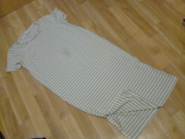 nošené, pěkné, pružné, moc příjemné, bez žmolků, ten flek tam neni-udělal mi to foťák, psaná vel. 10, délka je 114 cm, průramky od 2x47-60 cm, zn. Next maternity, tak i pro těhu, jsou hodně pružné