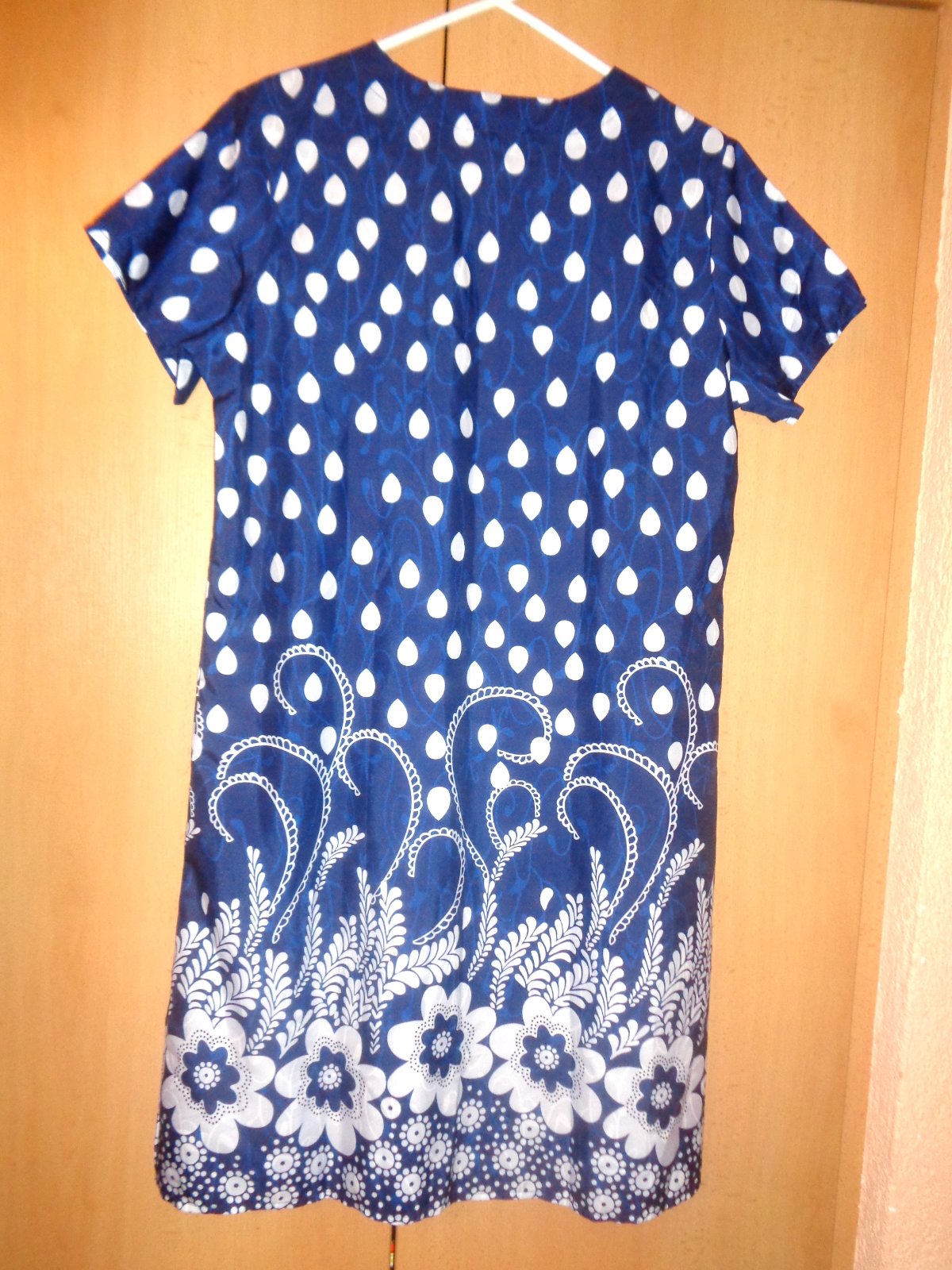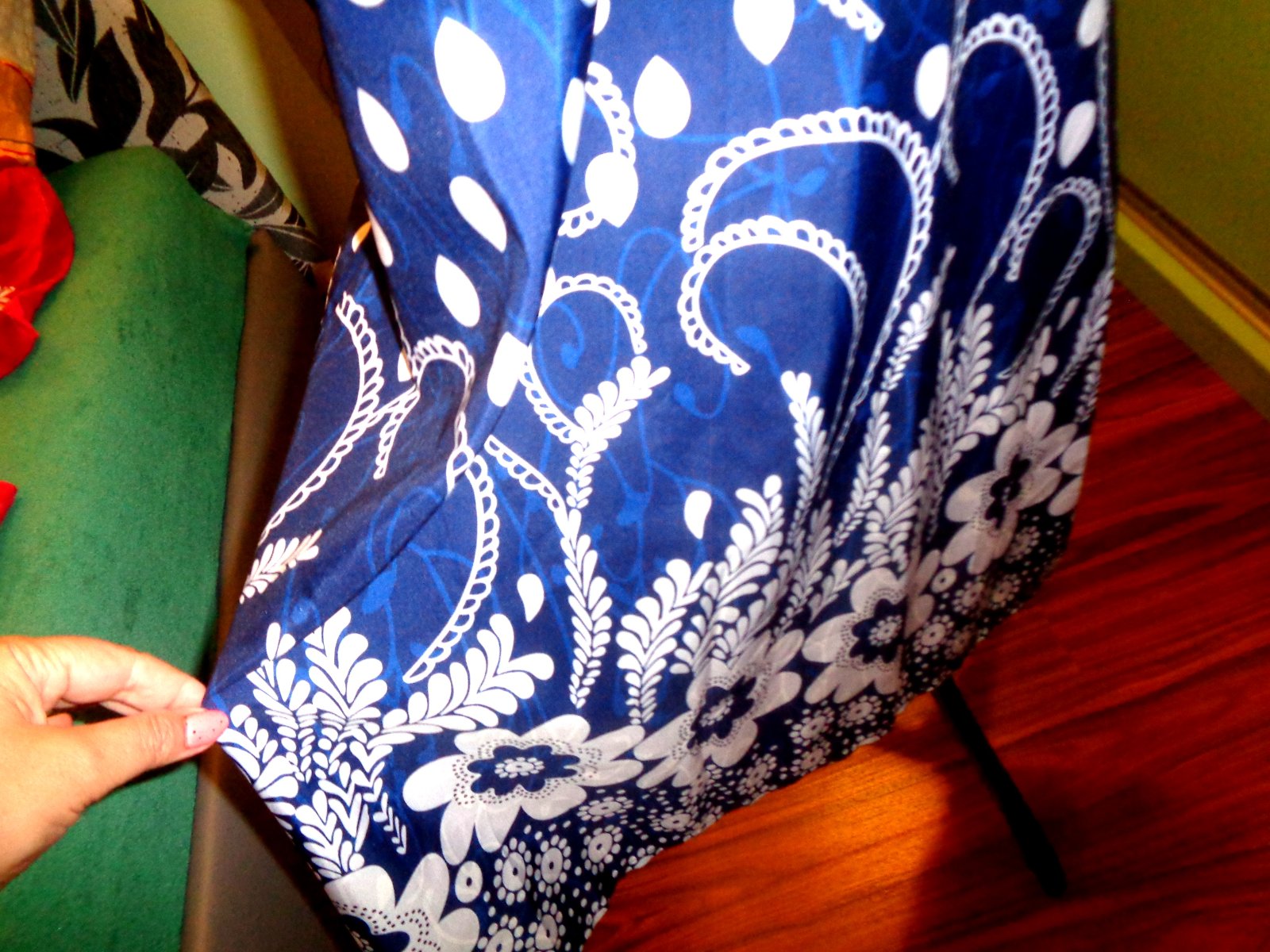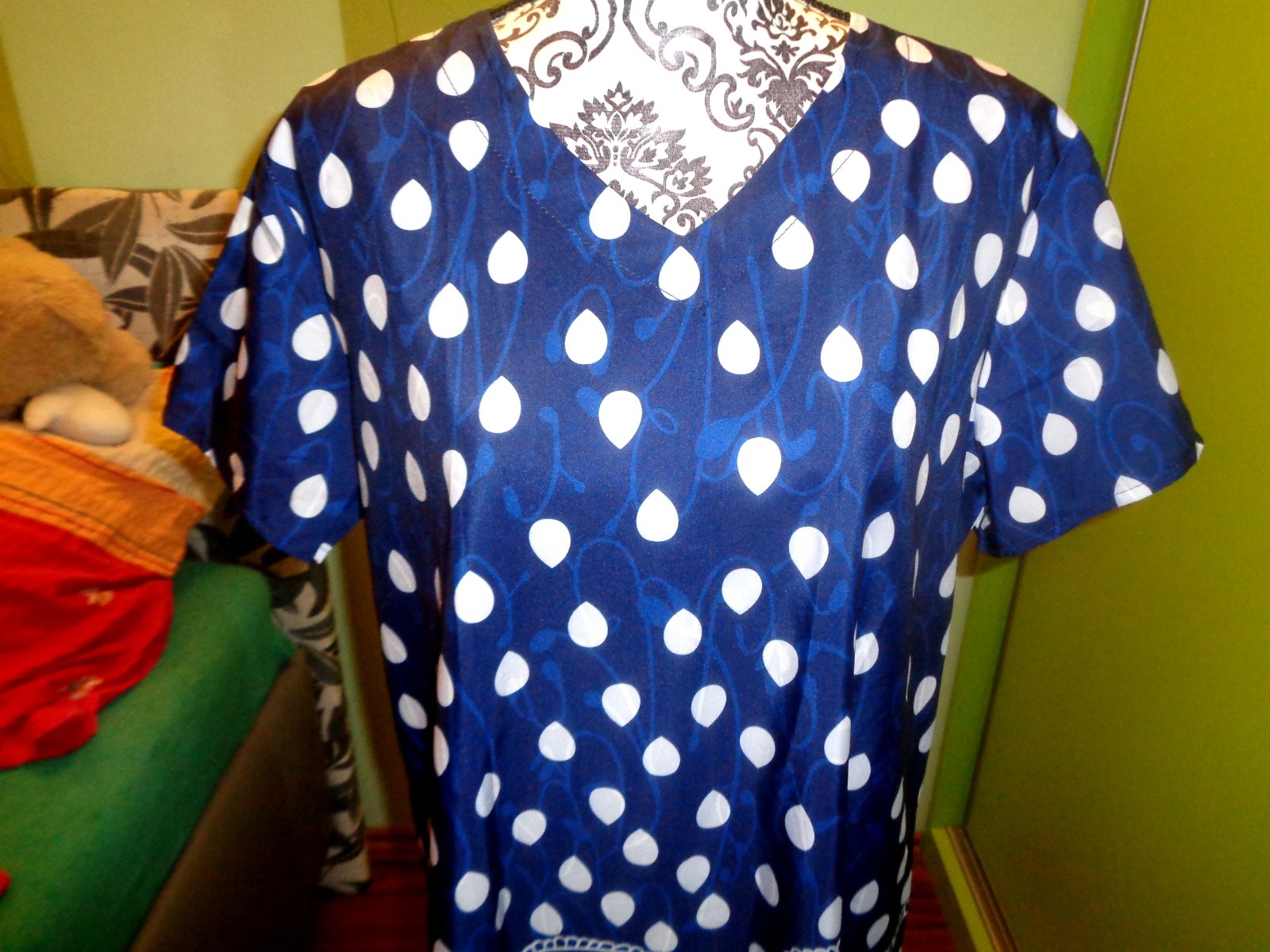 NOVÉ - JEN BEZ CEDULKY. 95% PES A 5% SPANDEX - CHLADIVÝ A VZDUŠNÝ MATERIÁL. HODNĚ TMAVOMODRÁ BARVA - BÍLÉ KAPIČKY A KVĚTY.