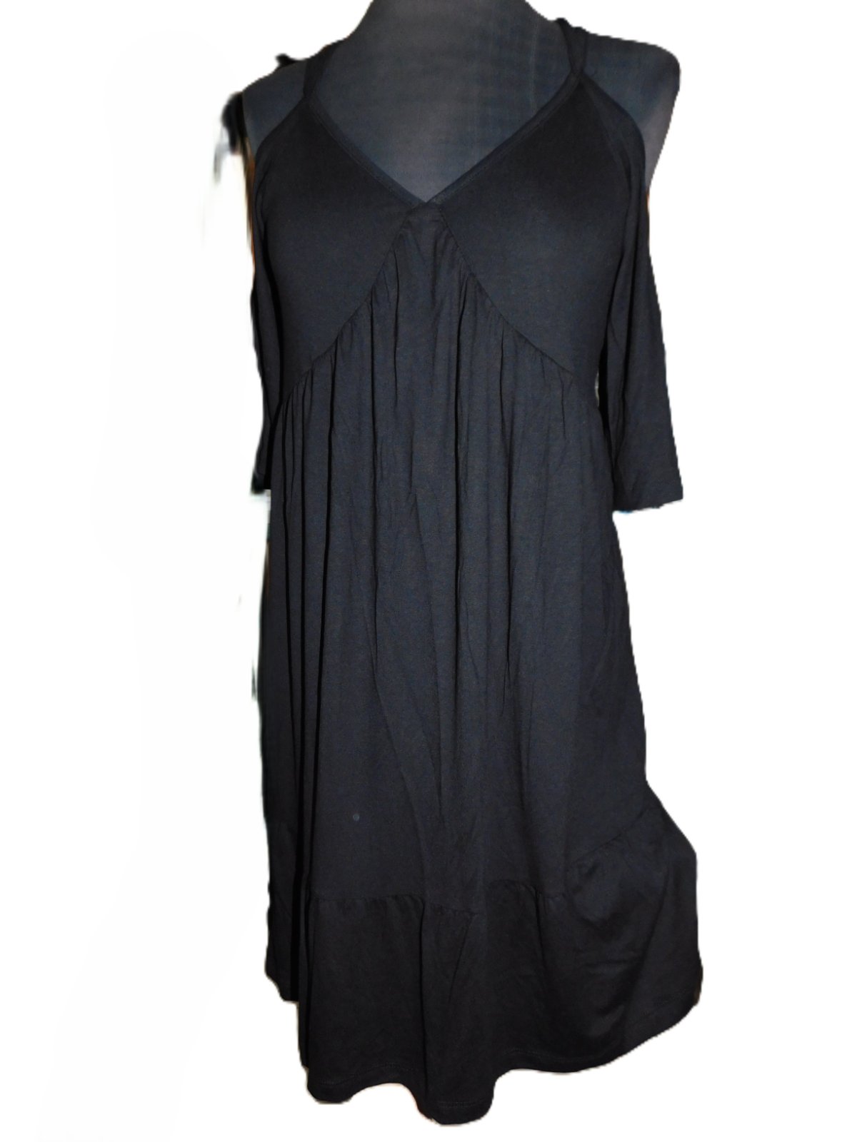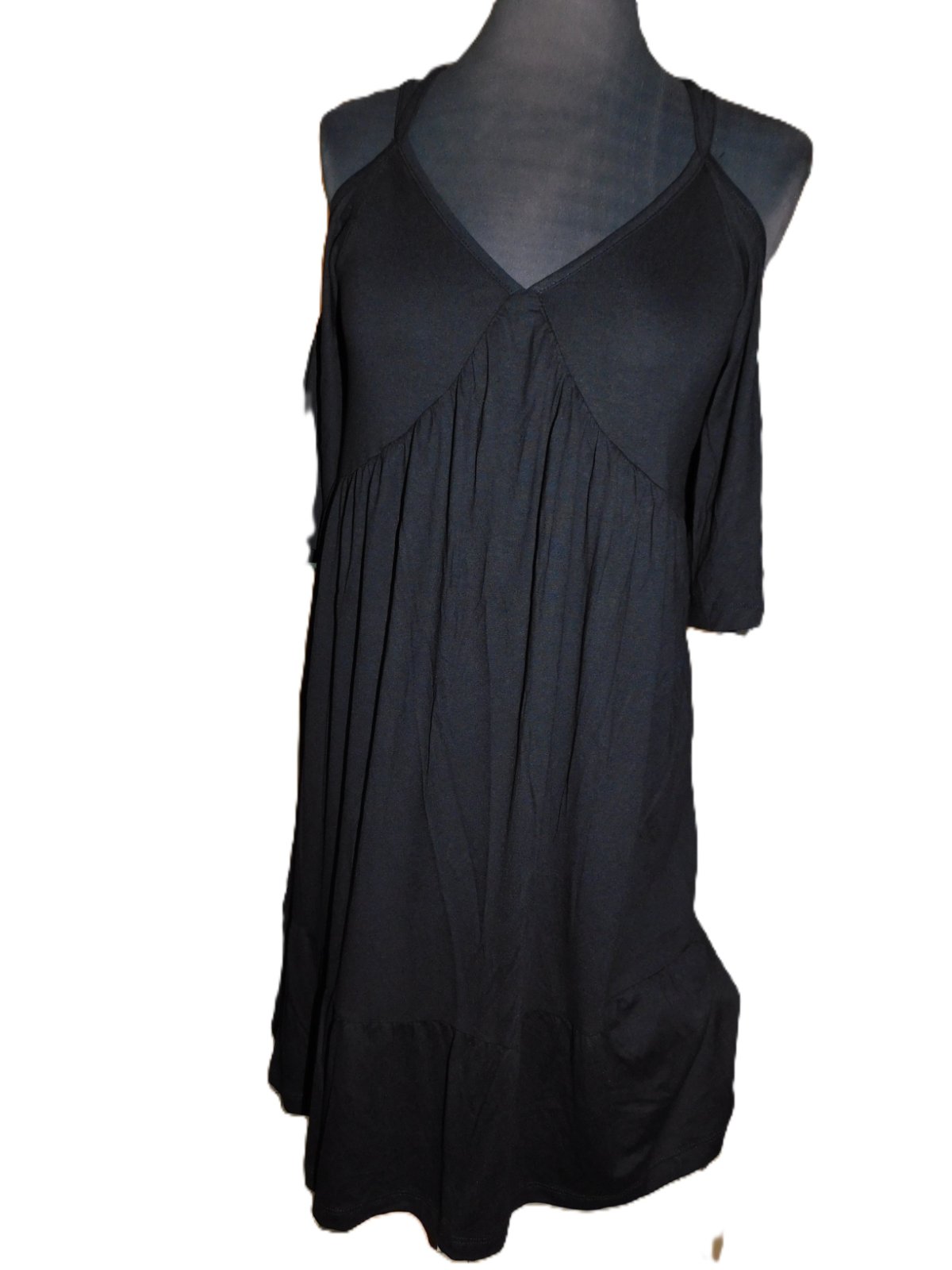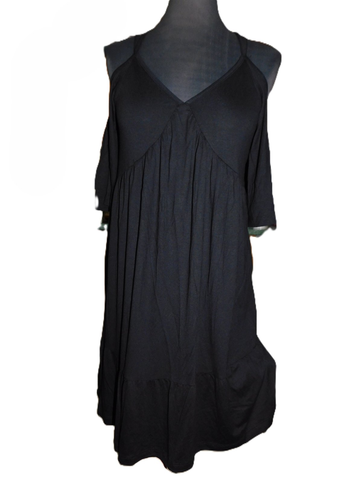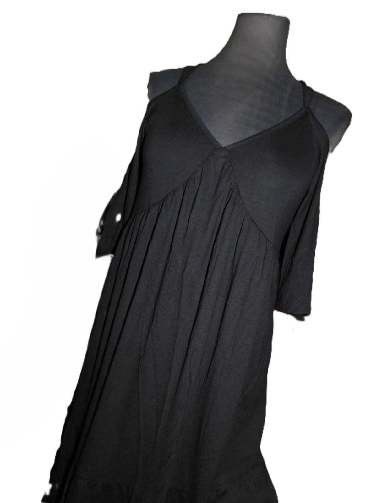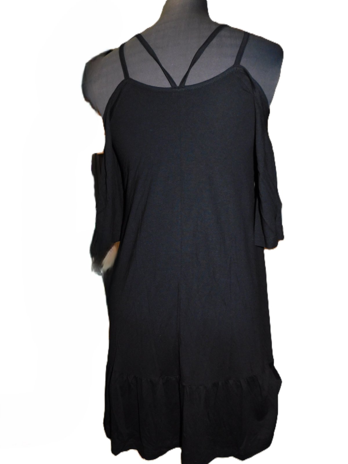Krásné dámské-dívčí šaty na špagetová ramínka se spadlými rukávy... Nové, bez visačky... střih do áčka a dolní okraj má volán... velmi příjemný pružný materiál.... vyrobeno 95% polyester a 5% elastan... velikost psaná XS...