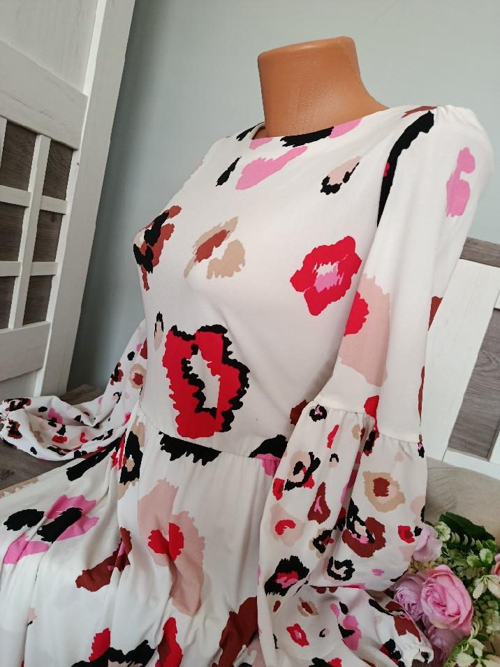 Super bílé šaty s potiskem. Midi délka....Šaty jsou pružné, konce rukávů jsou do gumičky....Nejsou úplně tenké :-) Spíše na jaro, podzim nebo zimu....Super v kombinaci s kozačkami a vestou.....Jsou v perfektním stavu. Materiál: 96 % polyester a 4 % elastanu. Míry : délka 94 cm, pas 2 x 35 cm - 2 x 45 cm, průramky 2 x 46 cm - 2 x 56 cm, délka rukávů od krku je 67 cm. Poštovné - balíkovna za 85 Kč nebo zásilkovnou za 90 Kč.