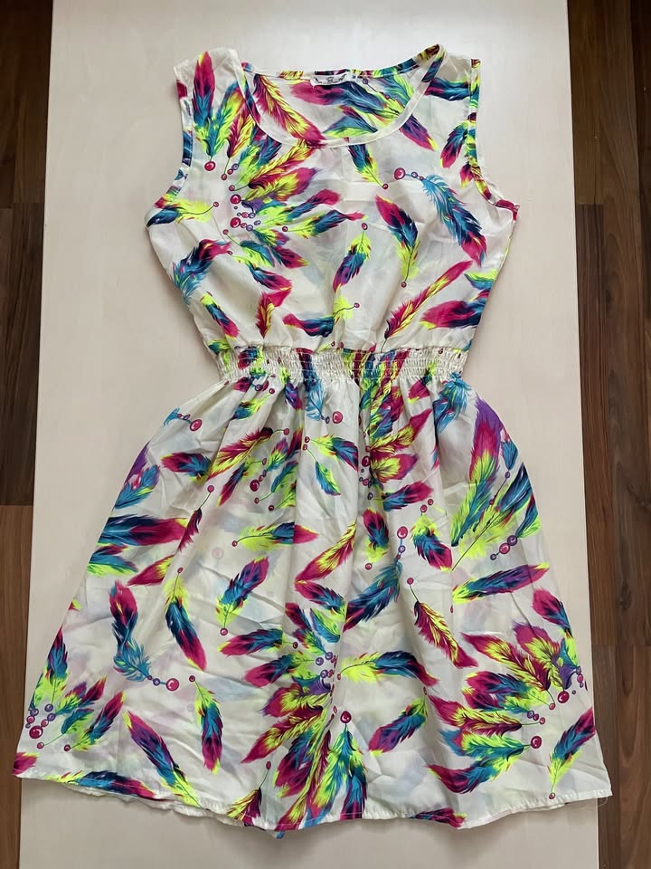 Letní vzorek šaty s peříčky, vel M ale jsou menší