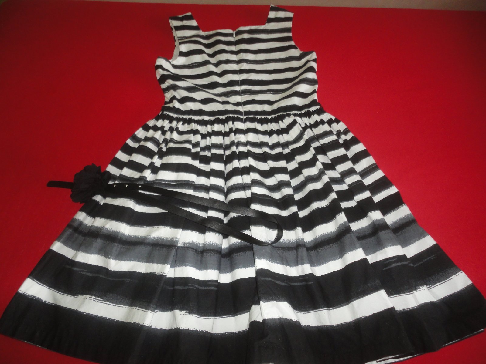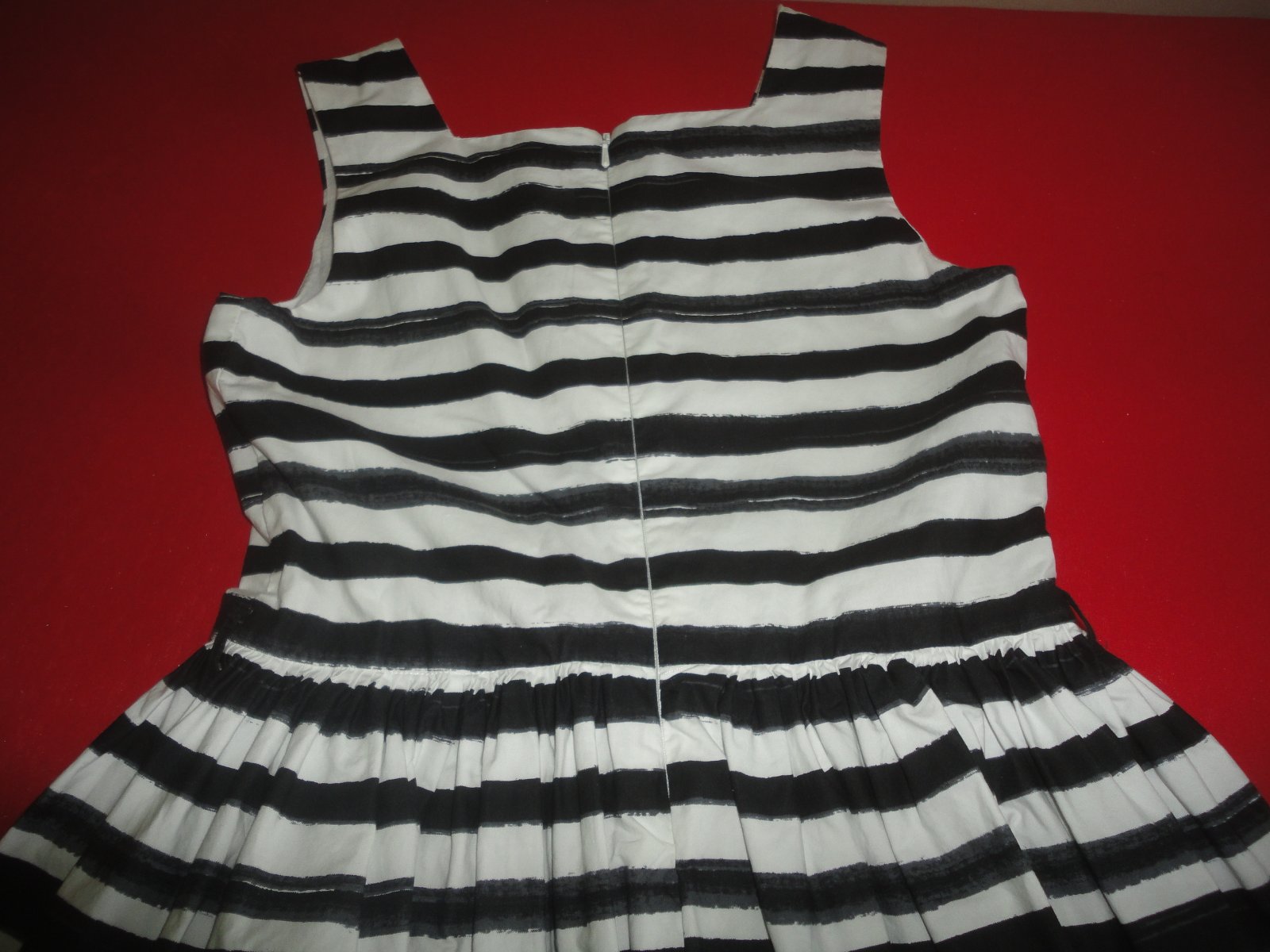 Jako nové, krásné, bavlnou v celé délce vypodšívkované šaty s odnímatelným páskem, svrchní materiál také bavlna, vzadu krytý zip, pohodlné oblékání, pas přestřižený, bohatě přibraná sukeň, d. 79cm, od ramene po pas d. 35,5cm, š. v průramku 37cm, š v pase 33,5cm